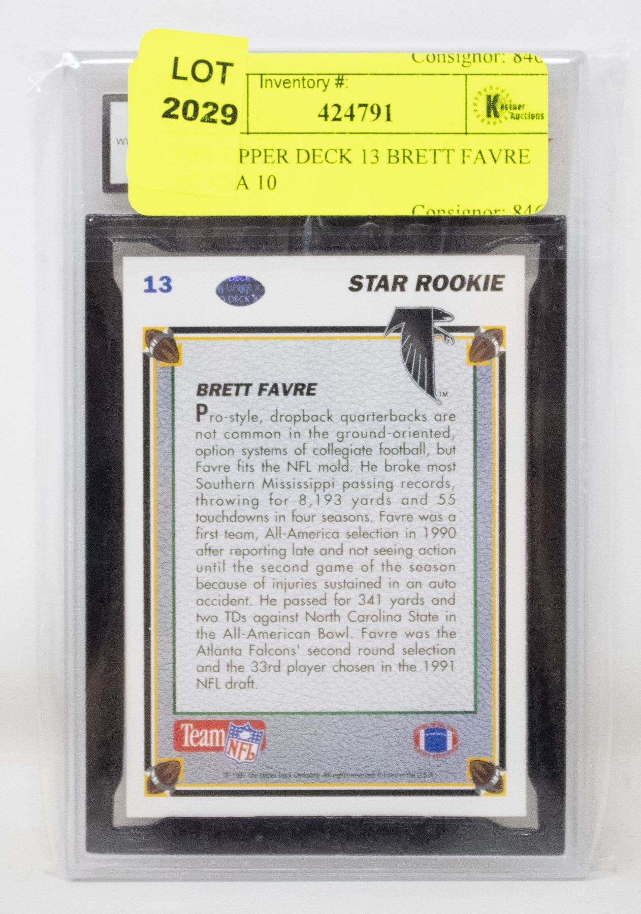 BRETT FAVRE IS A SUPER BOWL CHAMPION, THREE TIME MVP (MOST VALUABLE PLAYER) AT THE TIME OF HIS RETIREMENT, FAVRE WAS THE ALL-TIME NFL LEADER IN PASSING YARDS, PASSING TOUCHDOWNS, AND QUARTERBACK WINS. OUTSTANDING CAREER.