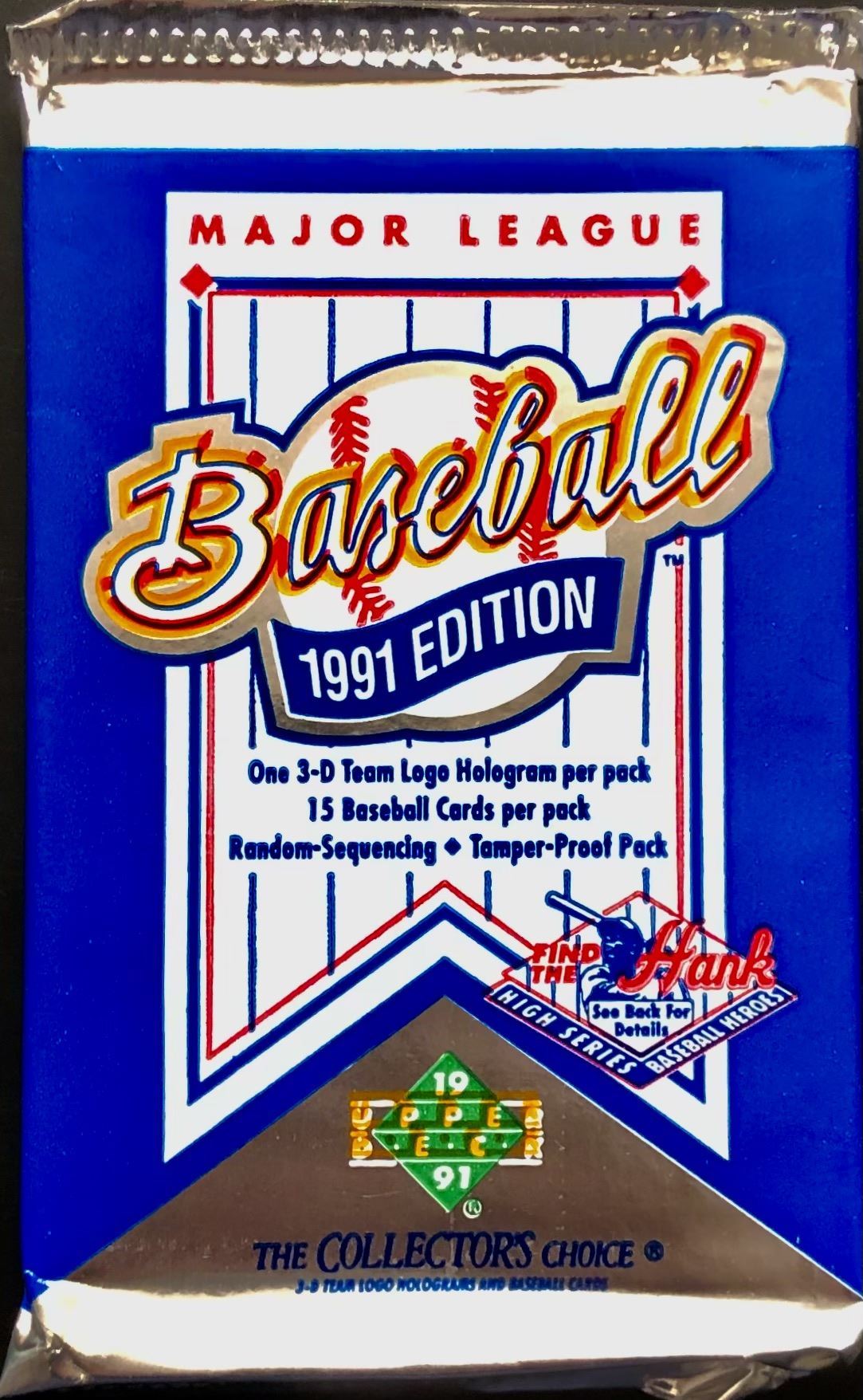 Sealed foil pack containing 15 cards & 1 team hologram logo MLB, baseball, UD