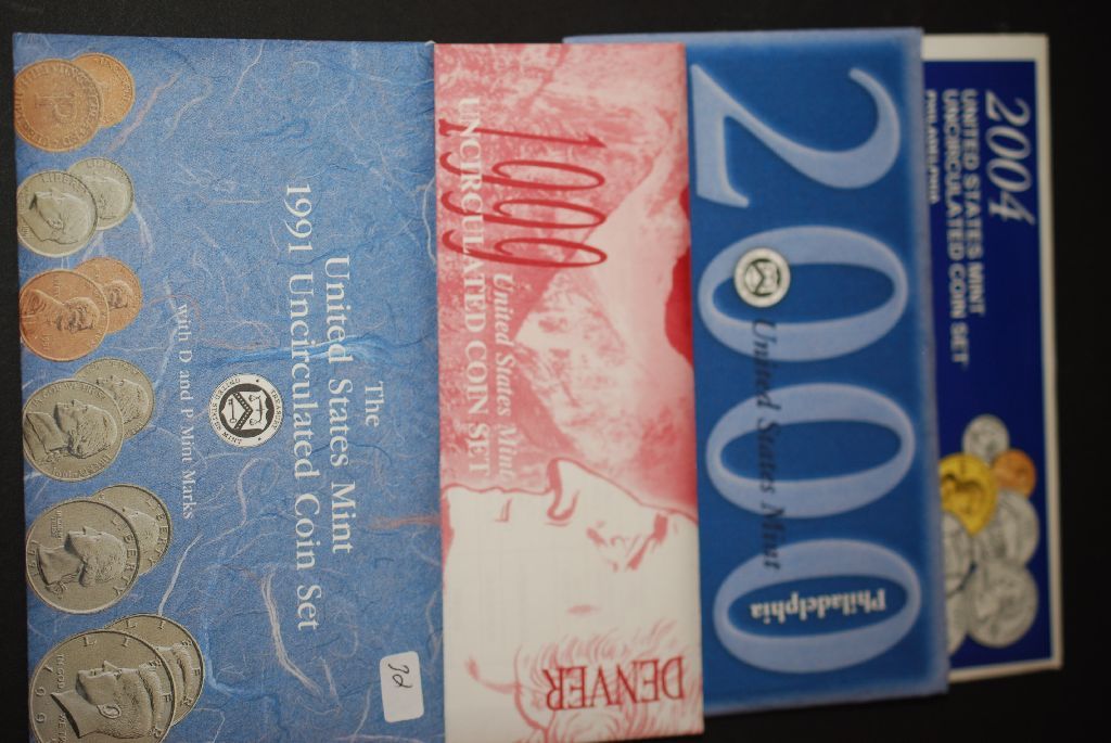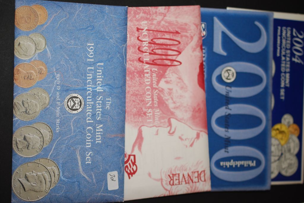 1991 US Mint Coin Set; P&D Mints; 1999-D US Mint Coin Set To Include US Mint State Quarter Coin Set; 2000-P US Mint Coin Set To Include US Mint State Quarter Coin Set & 2004-P US Mint Coin Set To Include US Mint State Quarter Coin Set; UNC; Lot of 4 Sets; EST. $25-35