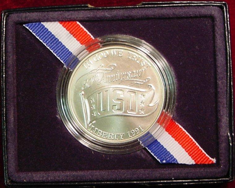 1991 USO Commemorative Silver Dollar. BU. Original as issued.