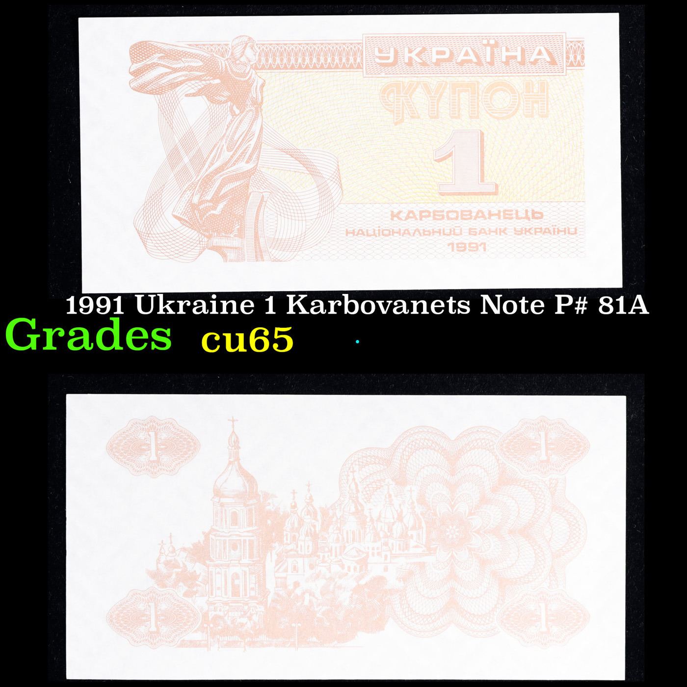 1991 Ukraine 1 Karbovanets Note P# 81A Grades Gem CU.