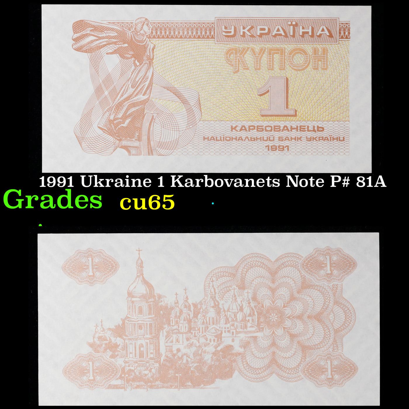 1991 Ukraine 1 Karbovanets Note P# 81A Grades Gem CU.