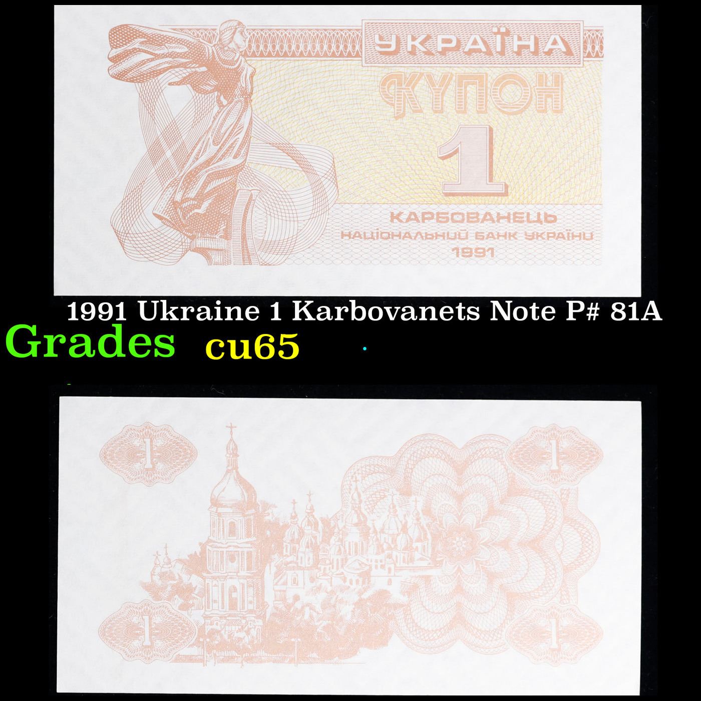 1991 Ukraine 1 Karbovanets Note P# 81A Grades Gem CU.