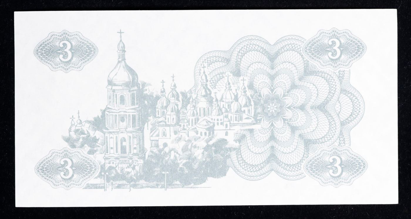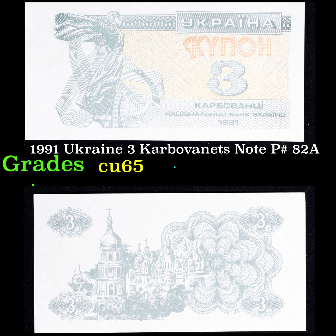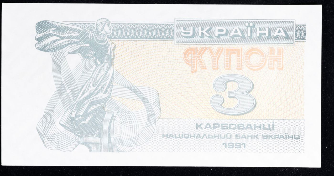 1991 Ukraine 3 Karbovanets Note P# 82A Grades Gem CU.