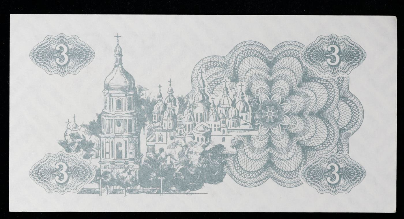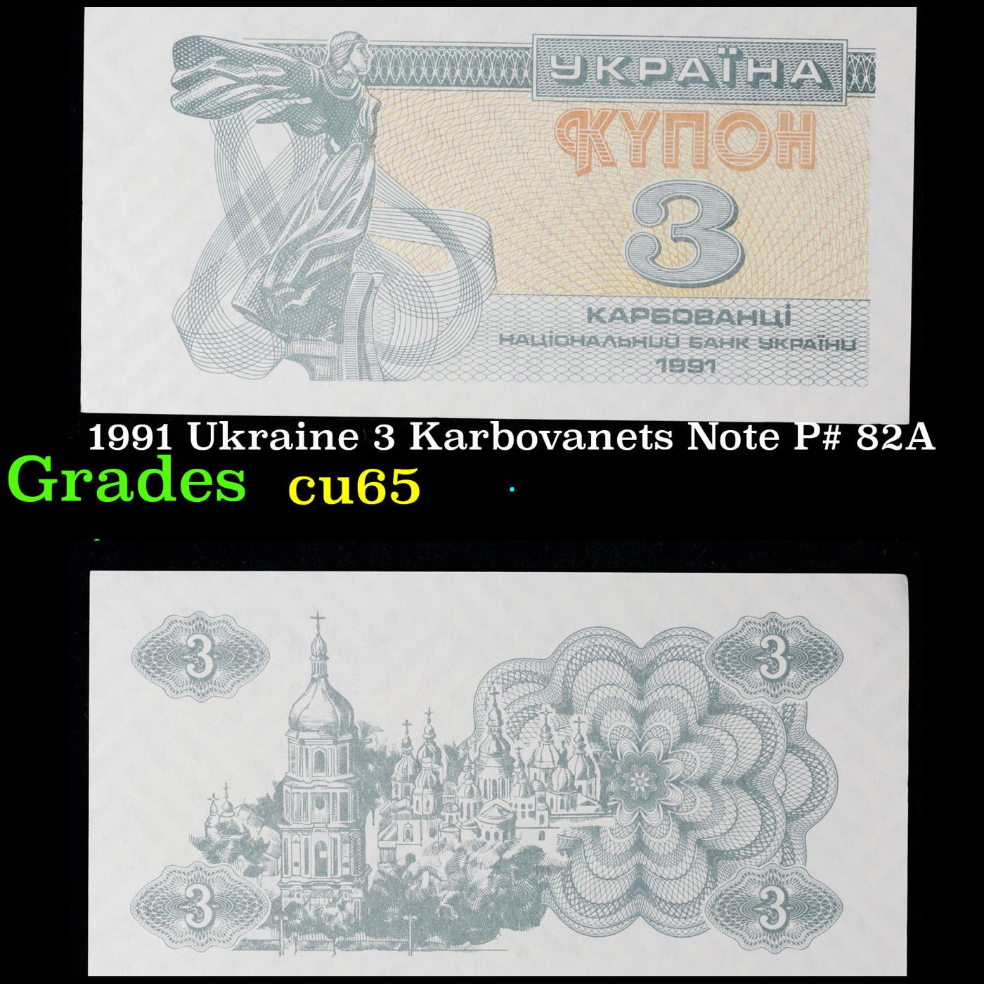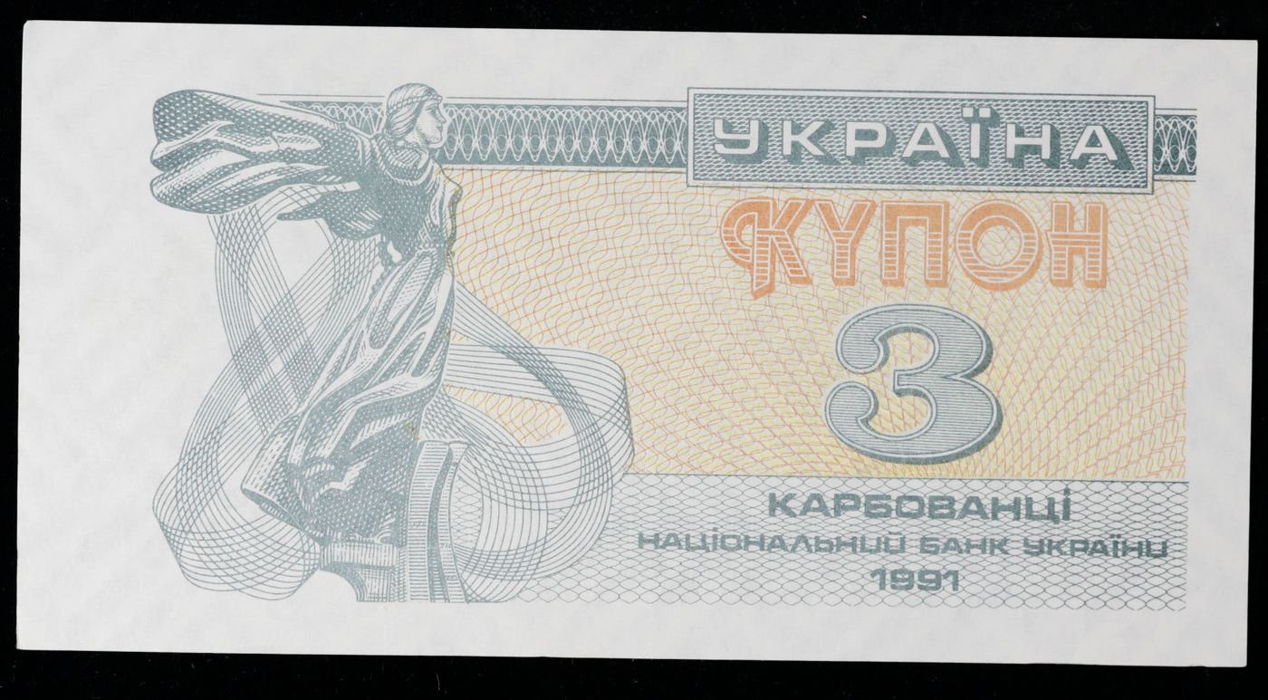 1991 Ukraine 3 Karbovanets Note P# 82A Grades Gem CU.