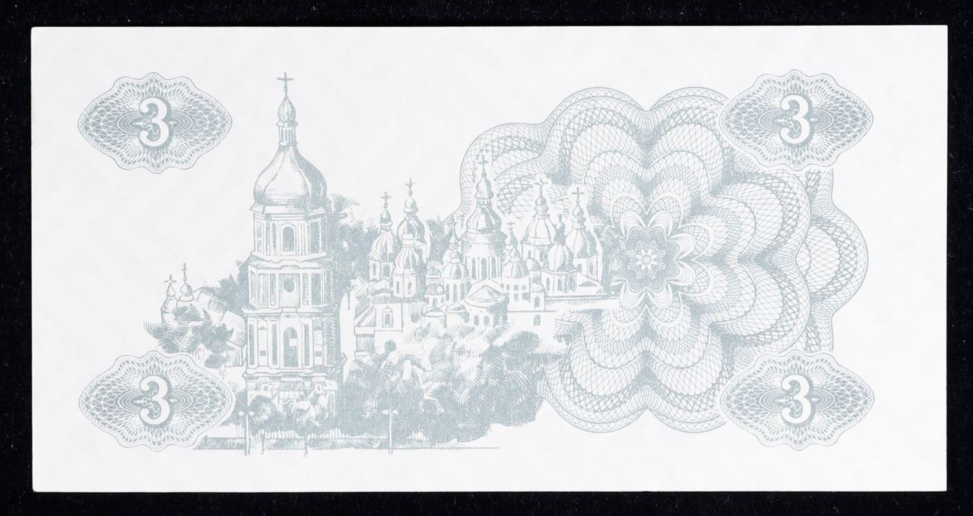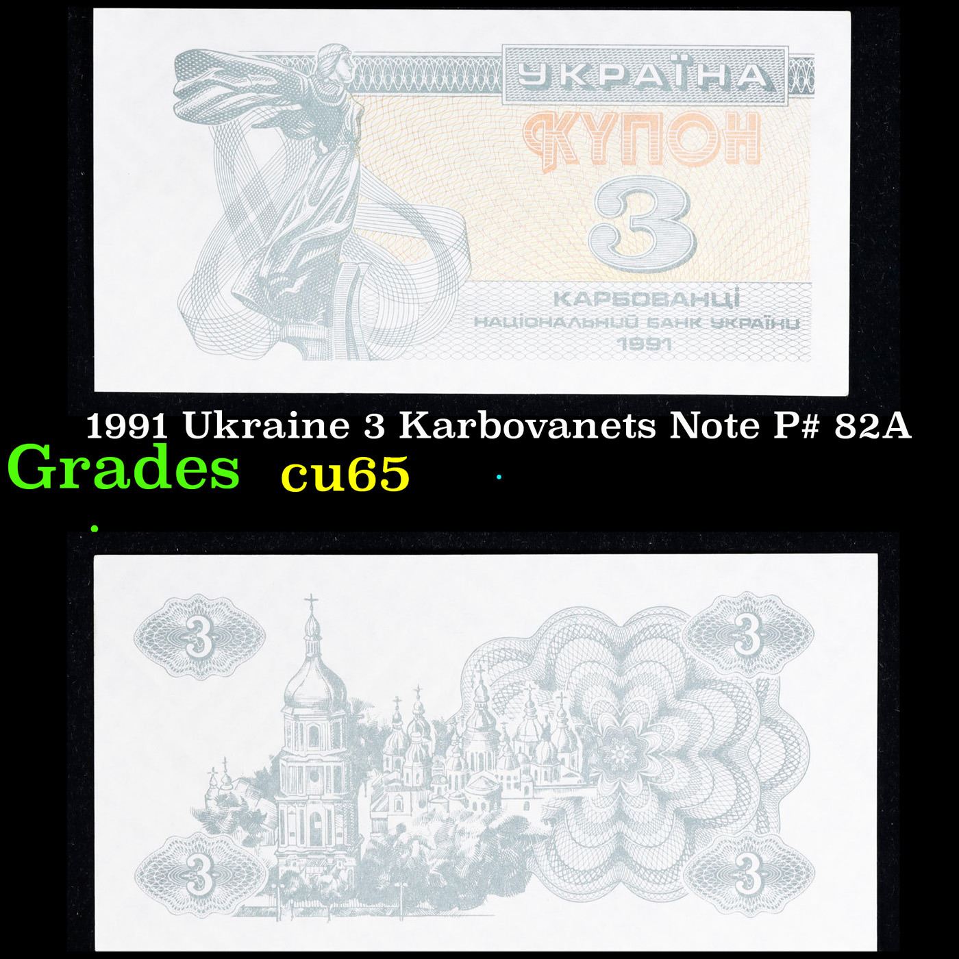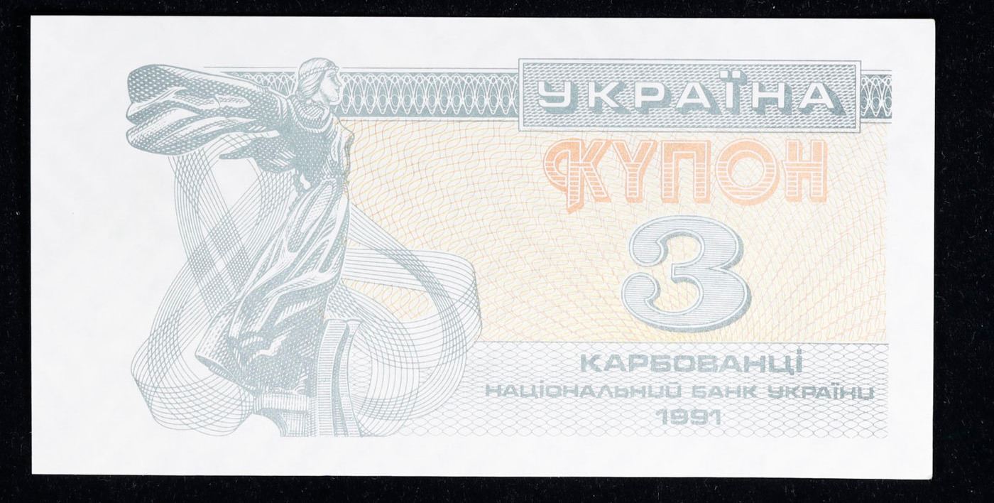 1991 Ukraine 3 Karbovanets Note P# 82A Grades Gem CU.