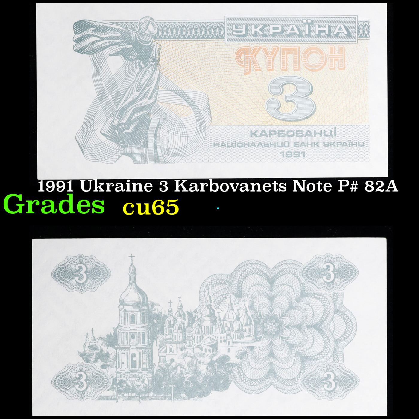 1991 Ukraine 3 Karbovanets Note P# 82A Grades Gem CU.
