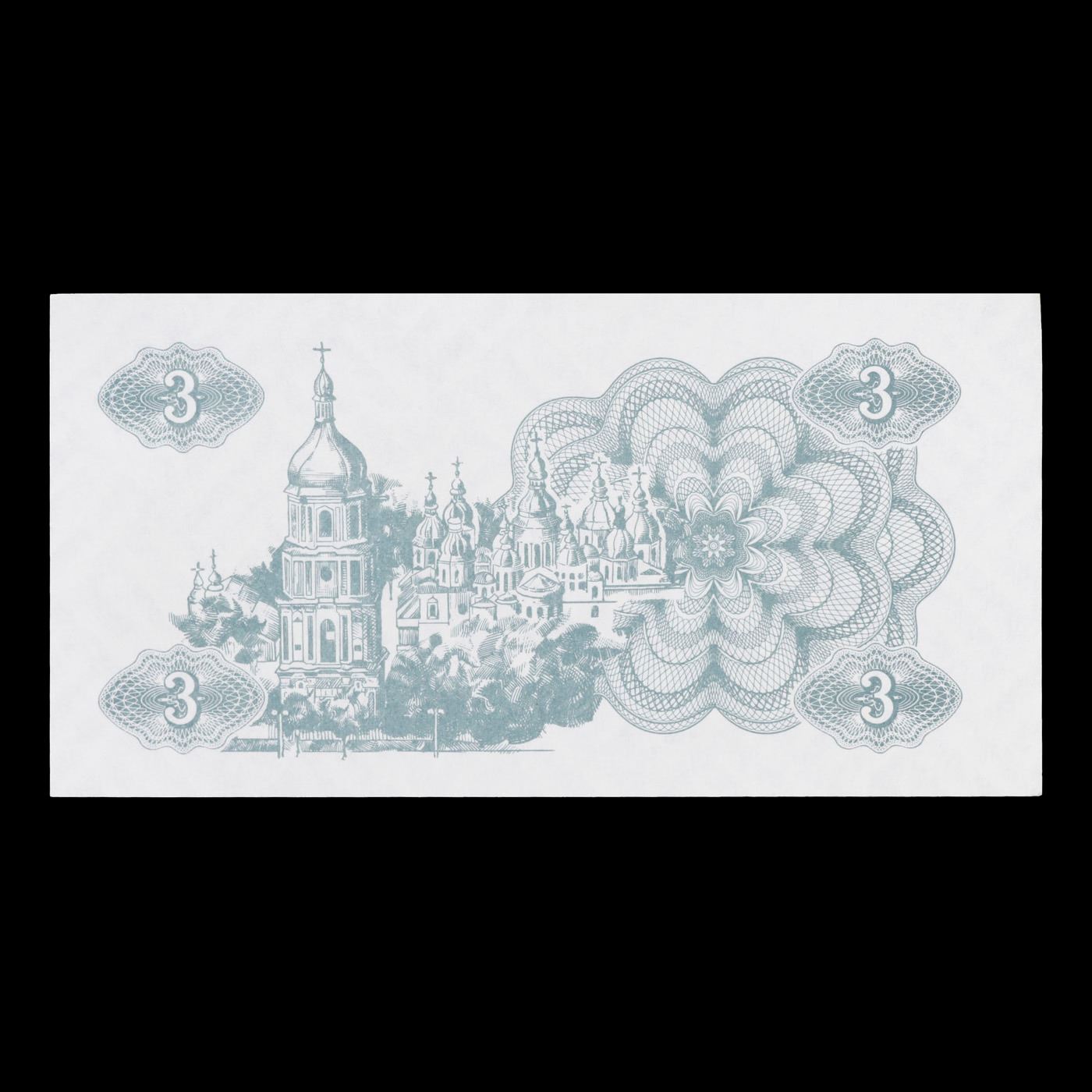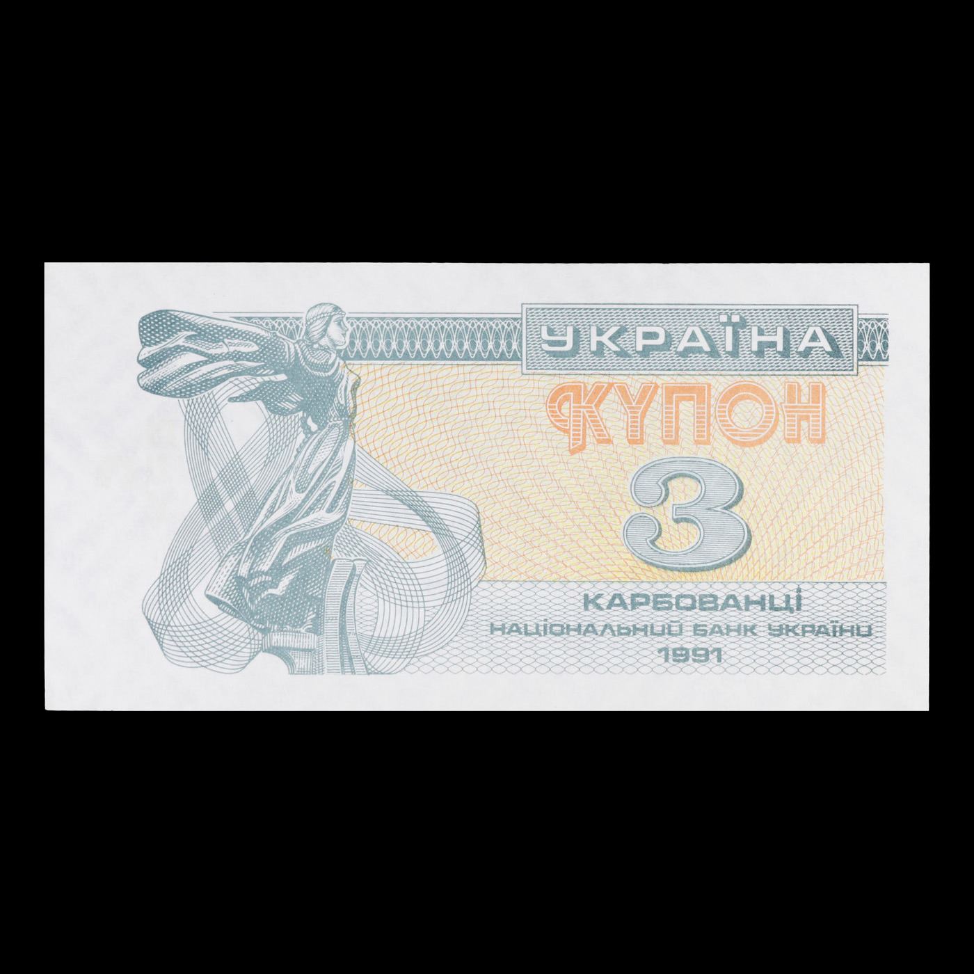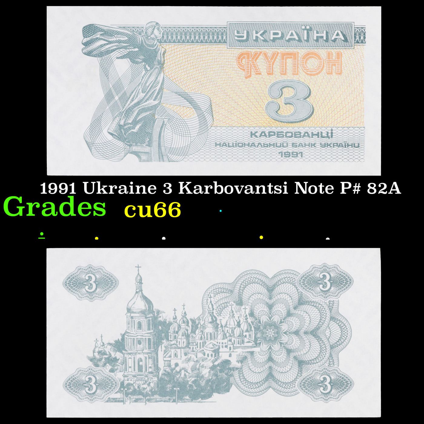 1991 Ukraine 3 Karbovantsi Note P# 82A Grades Gem+ CU.