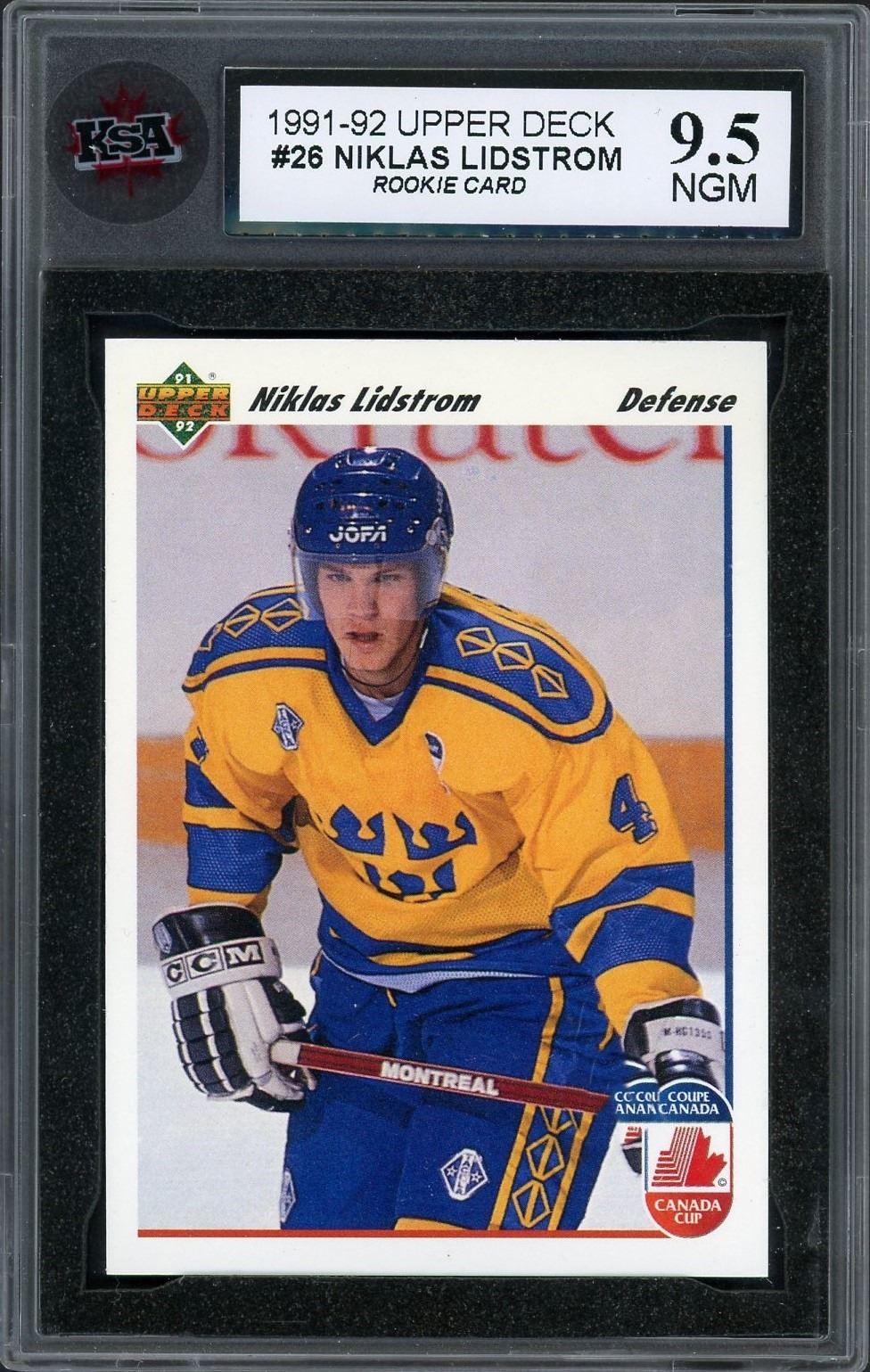1991 rookie card of Detroit Redwings and NHL Hall of famer Niklas Lidstrom graded a 9.5 by KSA