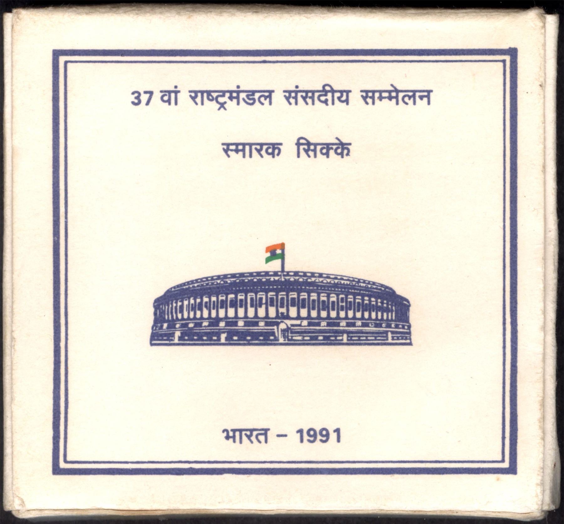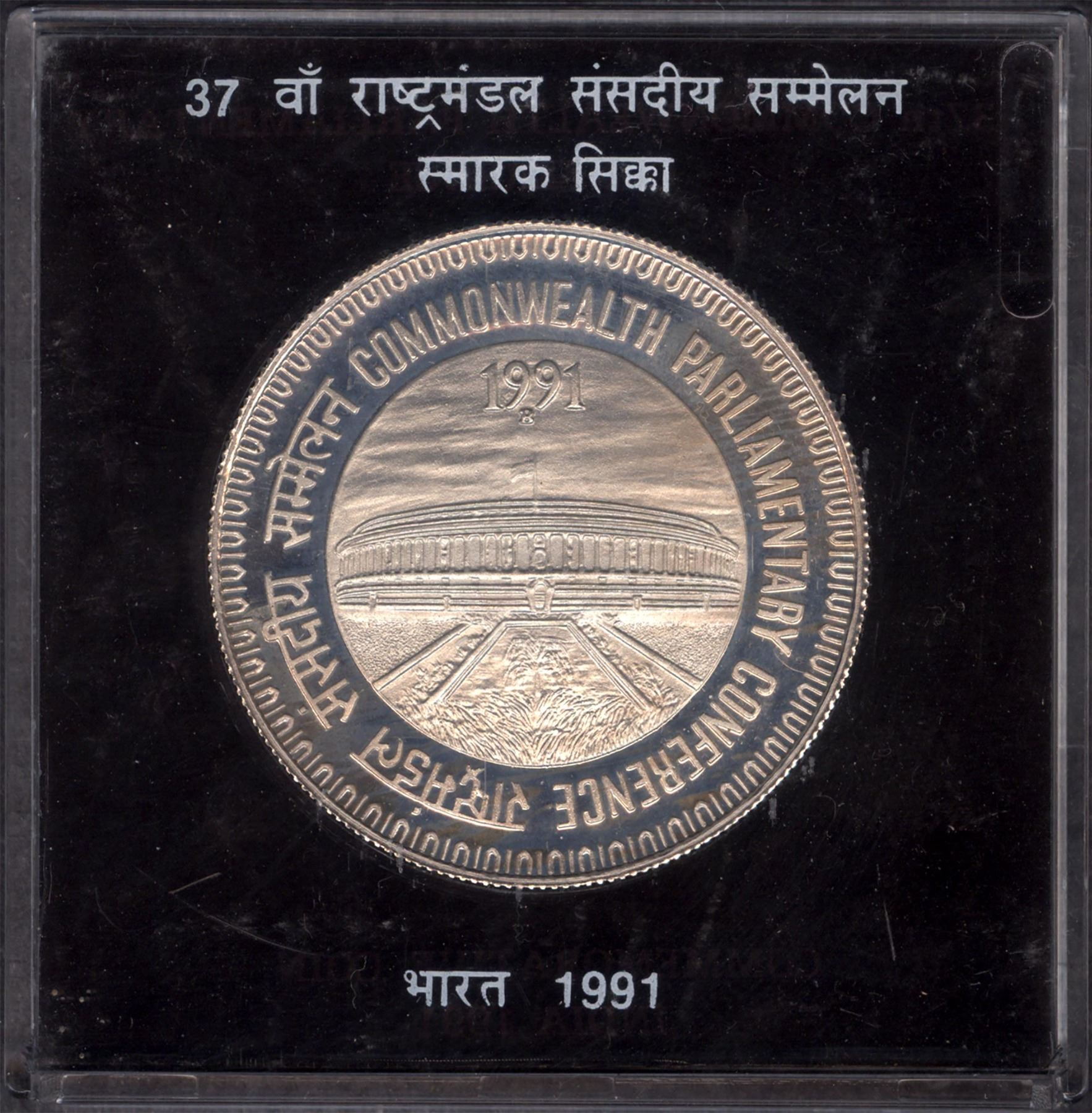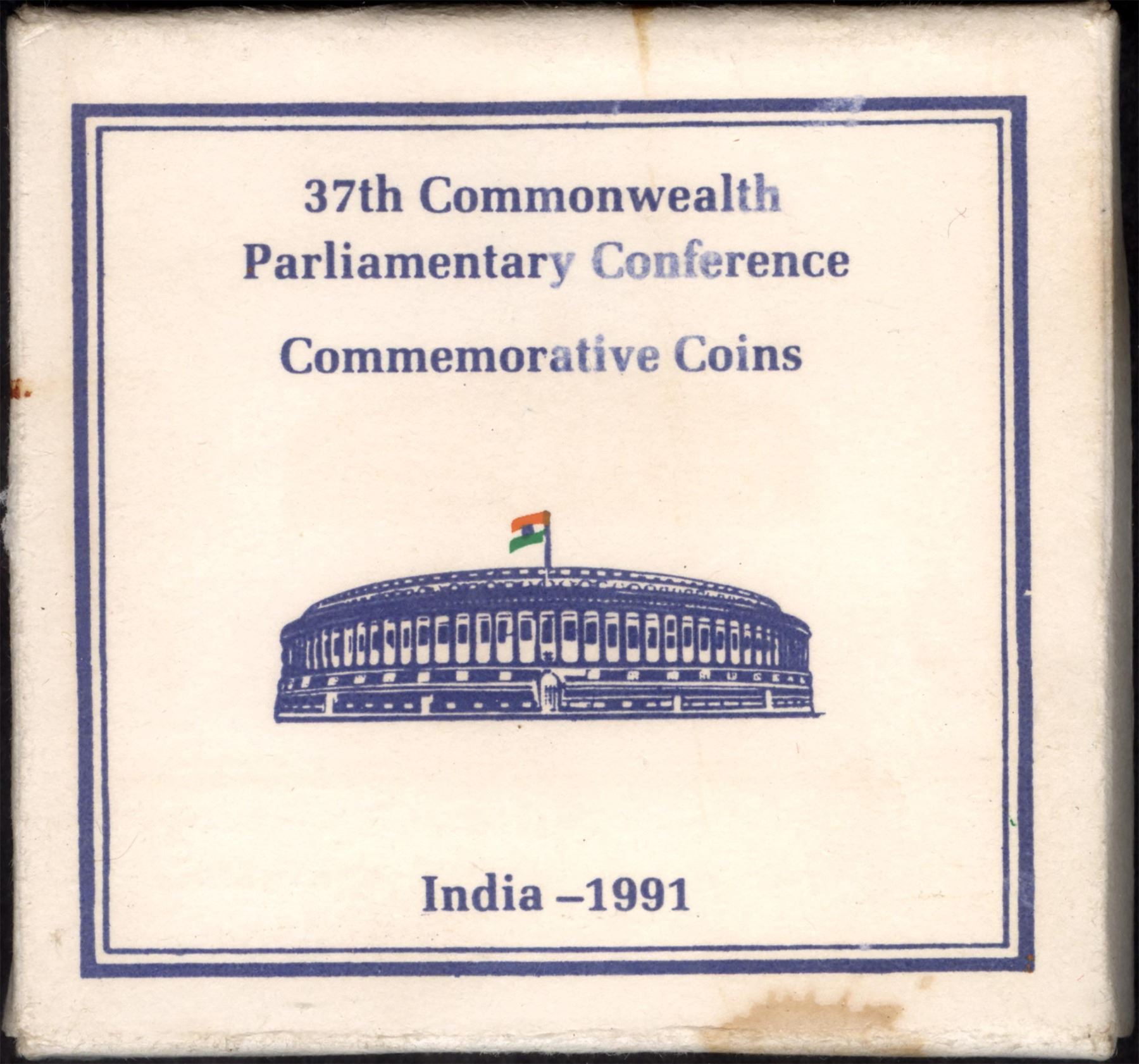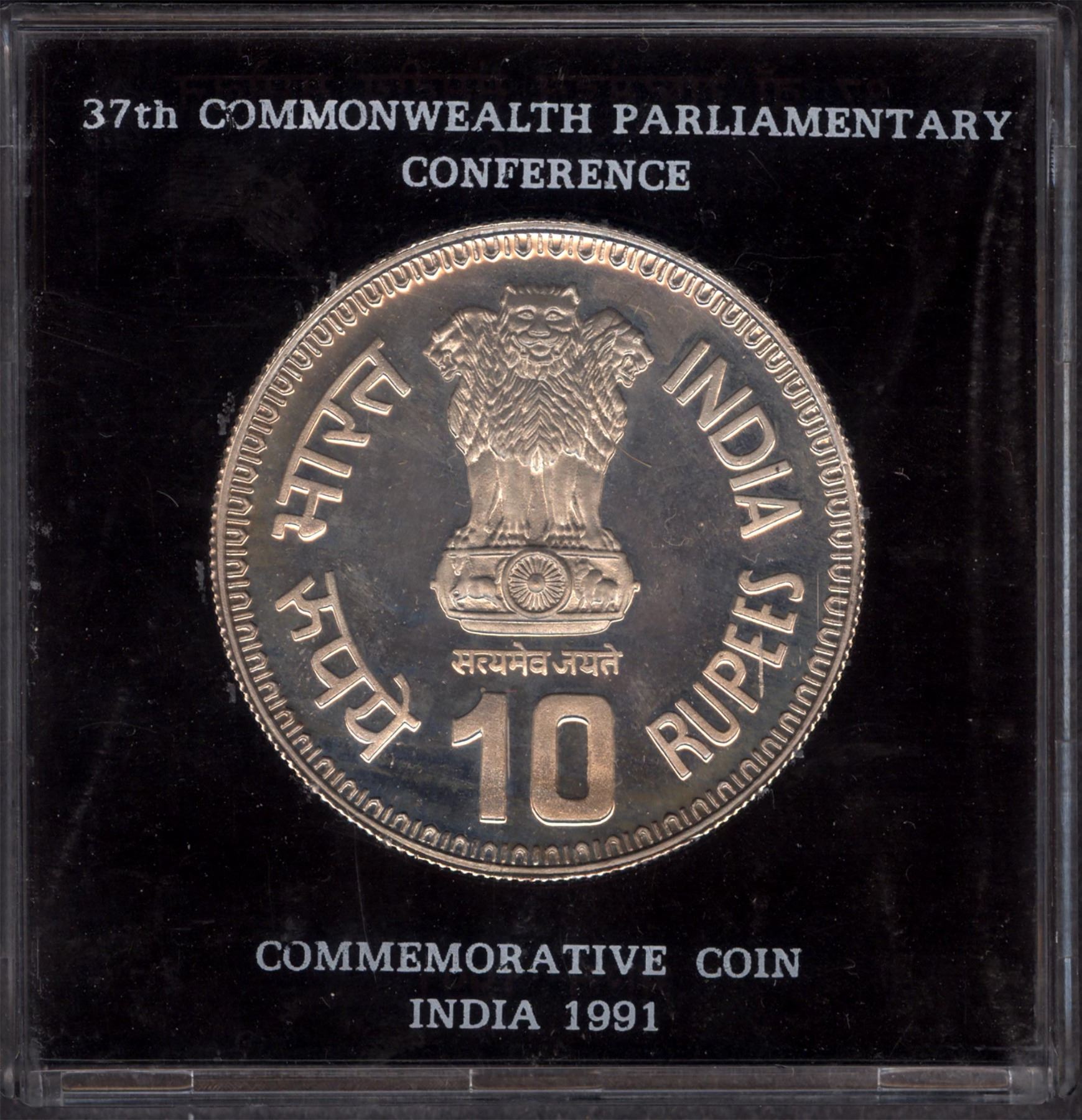 Republic India,1991,VIPProofSet,37thCommonwealth Parliamentary Conference Commemorative Coin,Single Coin Set,Copper Nickel 10 Rupees, BombayMint,(RB # 149),intact condition in an acrylic case with an outer cover, Proof, ExtremelyRare.