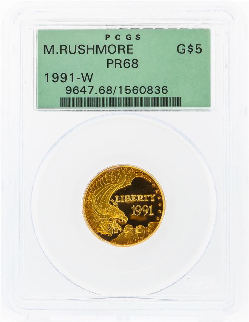 One 1991-W $5 Mount Rushmore Commemorative Gold Coin PCGS PR68. PCGS Graded.