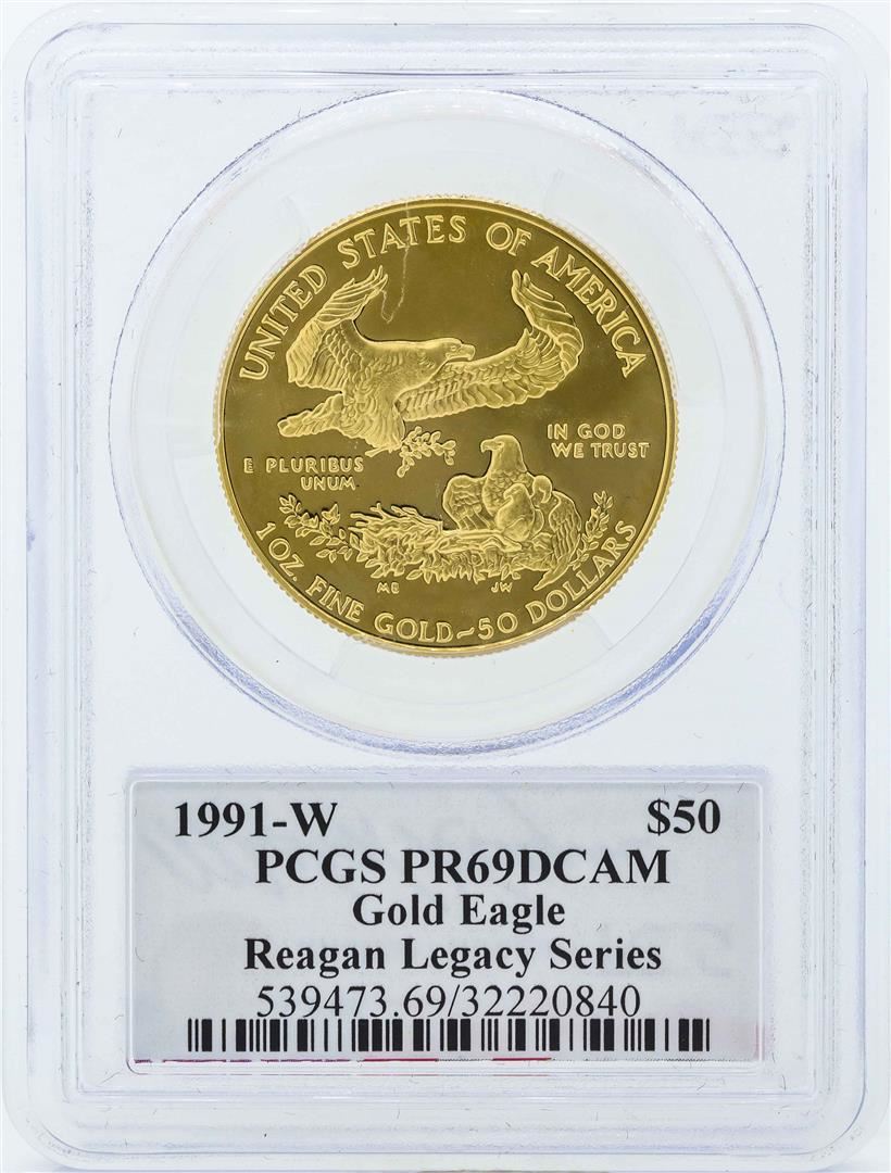 One 1991-W $50 American Gold Eagle Coin Reagan Legacy Series PCGS PR69DCAM. PCGS Graded.