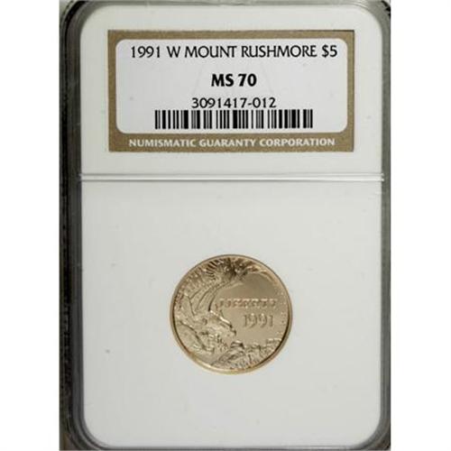 1991-W G$5 Mount Rushmore Gold Five Dollar MS70 NGC