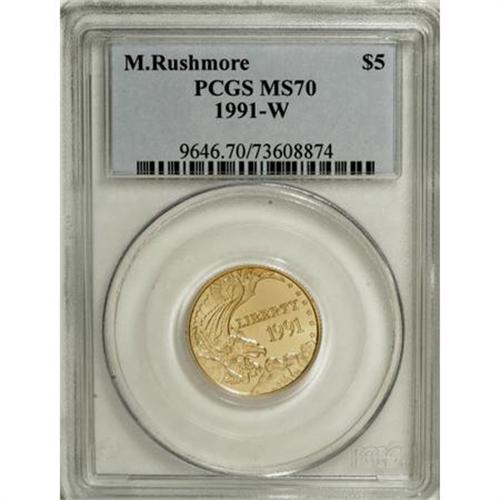 1991-W G$5 Mount Rushmore Gold Five Dollar MS70 PCGS