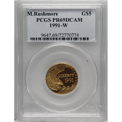 1991-W G$5 Mount Rushmore Gold Five Dollar PR69 Deep