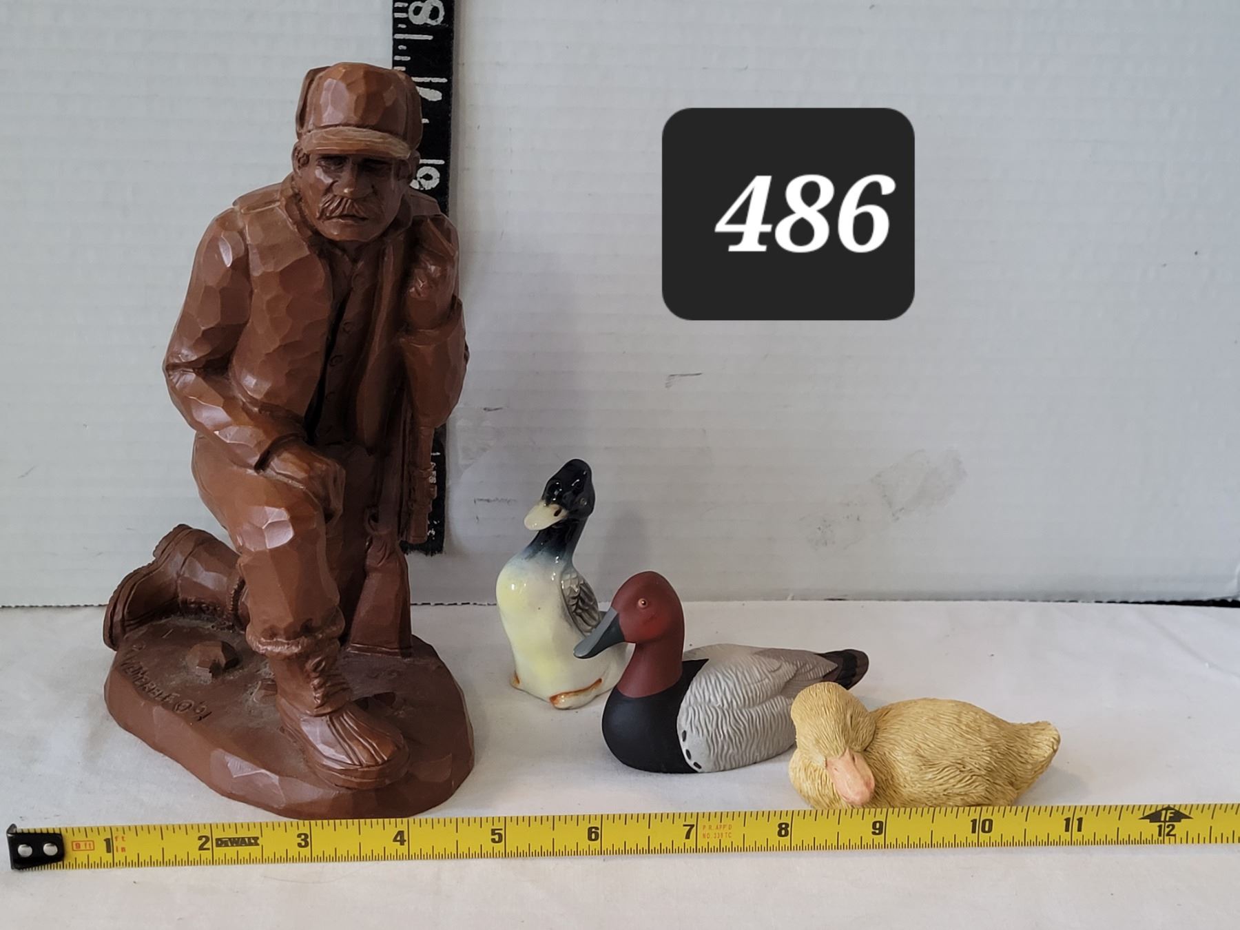 1991 Wetherbee Carved hunter figure & 3 ducks