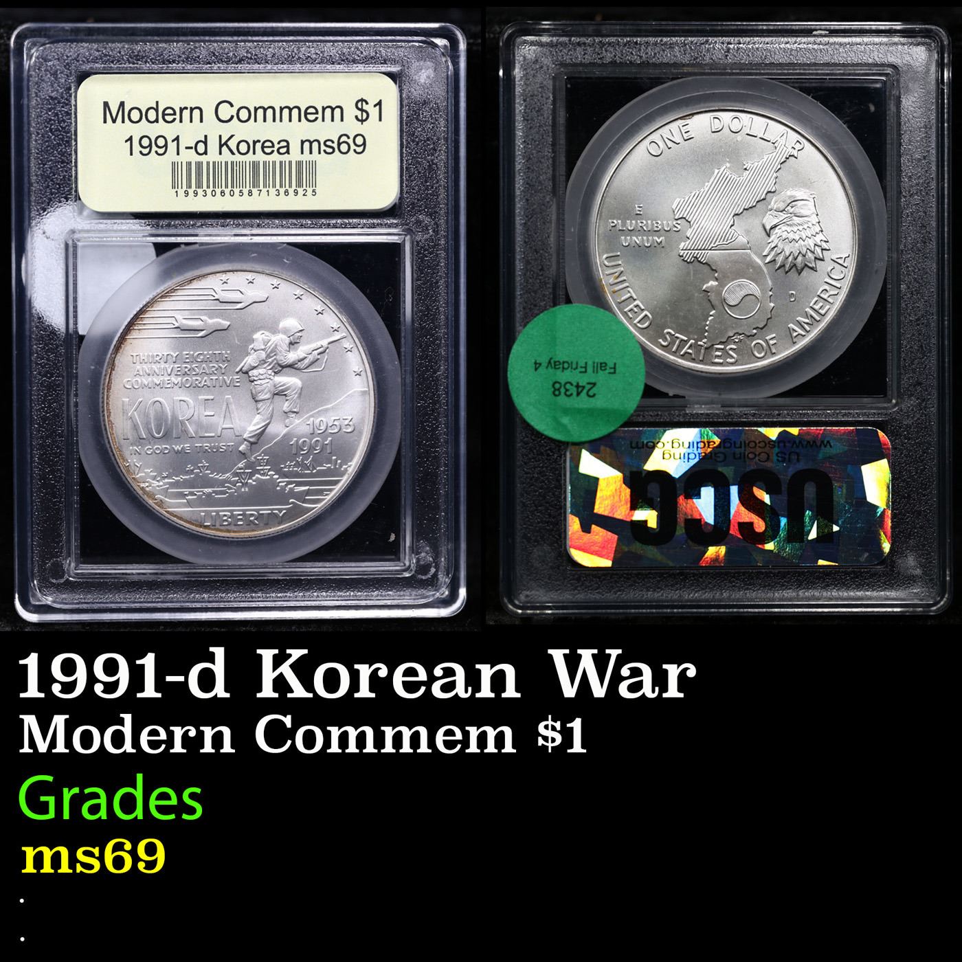 1991-d Korean War Modern Commem Dollar $1 Graded Gem+++++ Unc BY USCG.