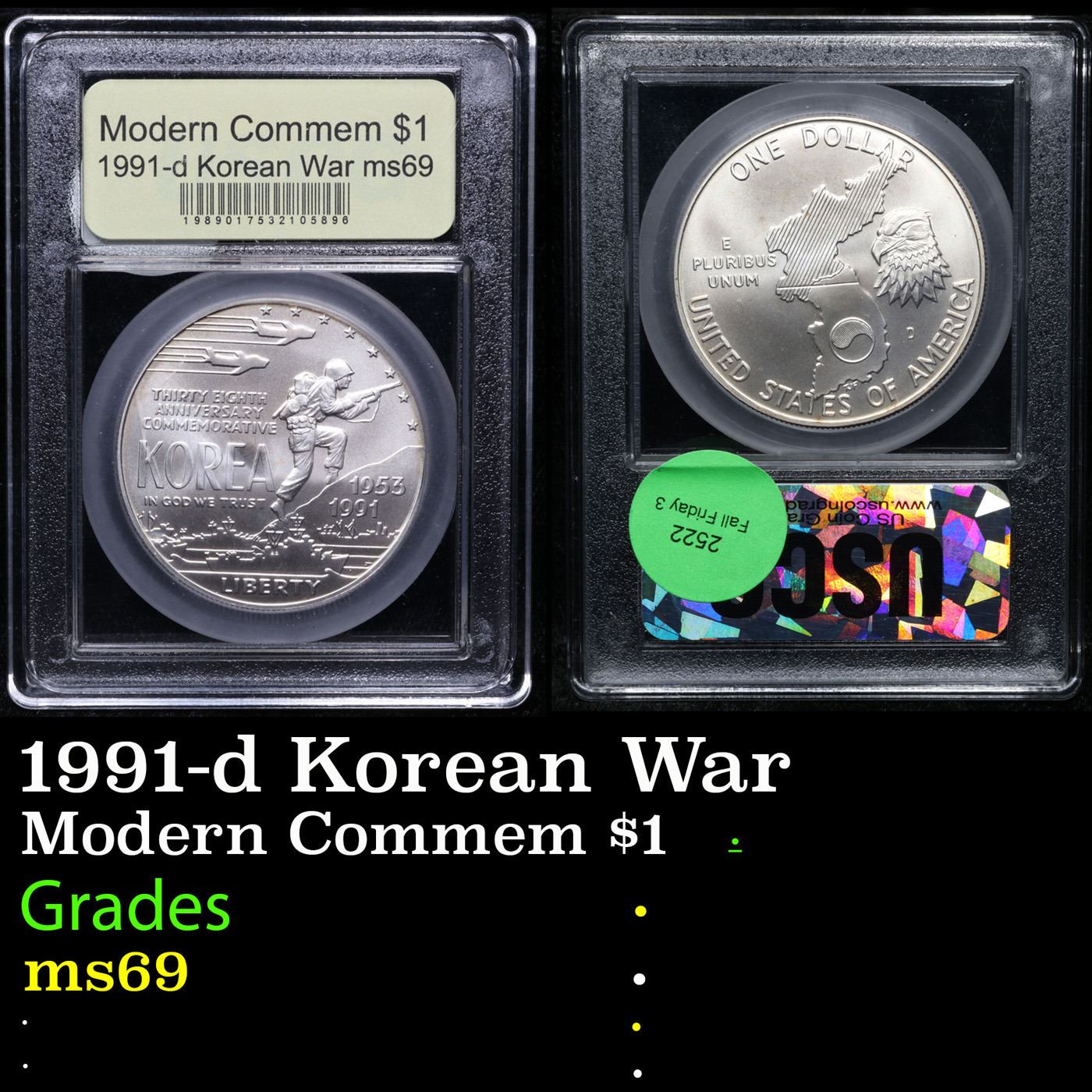 1991-d Korean War Modern Commem Dollar $1 Graded ms69 By USCG.