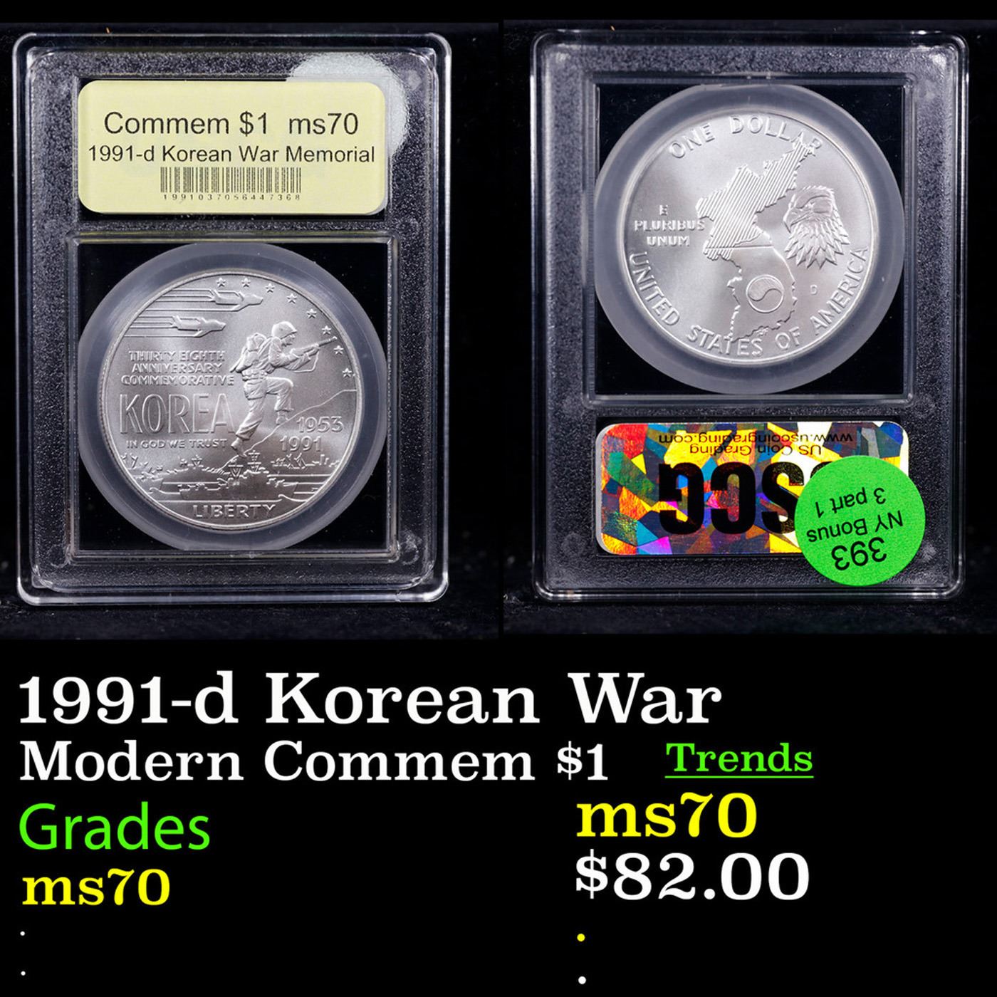 1991-d Korean War Modern Commem Dollar $1 Graded ms70, Perfection BY USCG.
