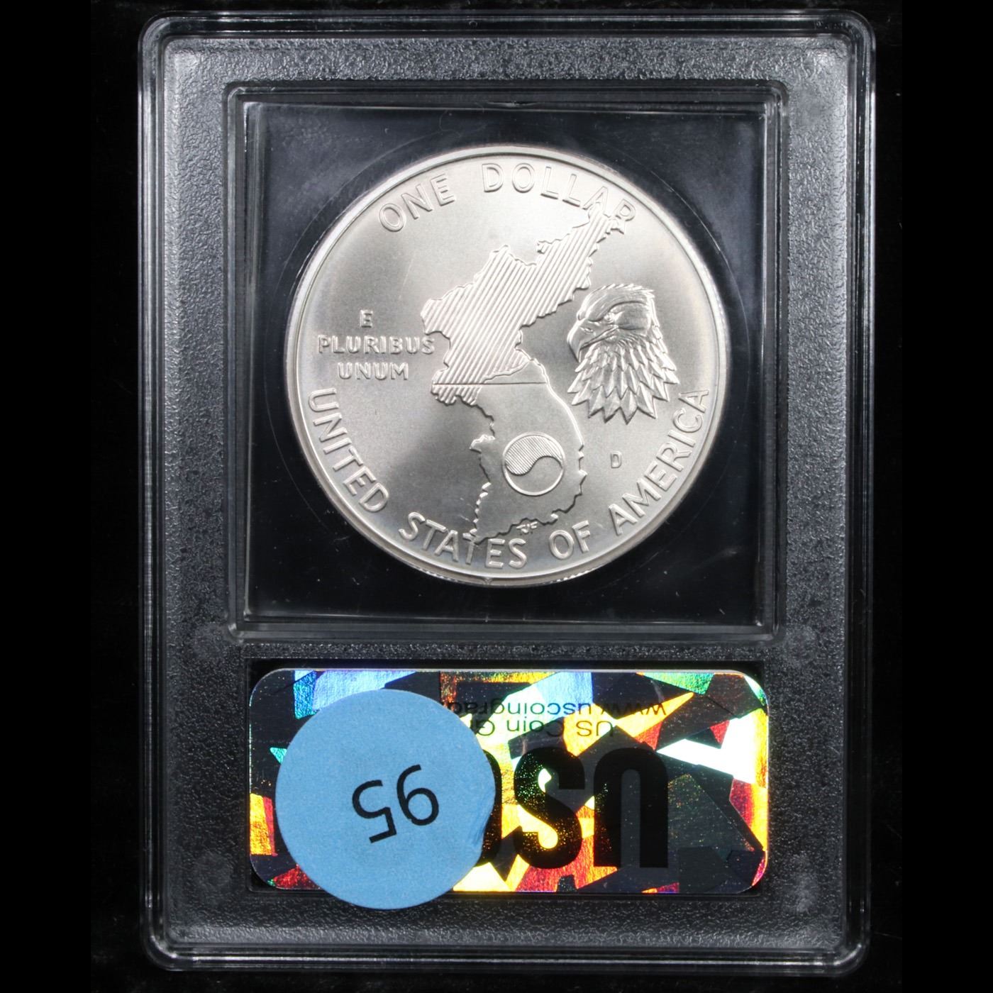 1991-d Korean War Modern Commem Dollar $1 Graded ms70, Perfection By USCG. The 1991 Korean War Memorial Silver Dollar was issued for the 38th anniversary of the Korean War. The oddly chosen anniversary date is the result of the division between North and South Korea at the 38th degree of latitude. This example was graded ms70 by USCG.
