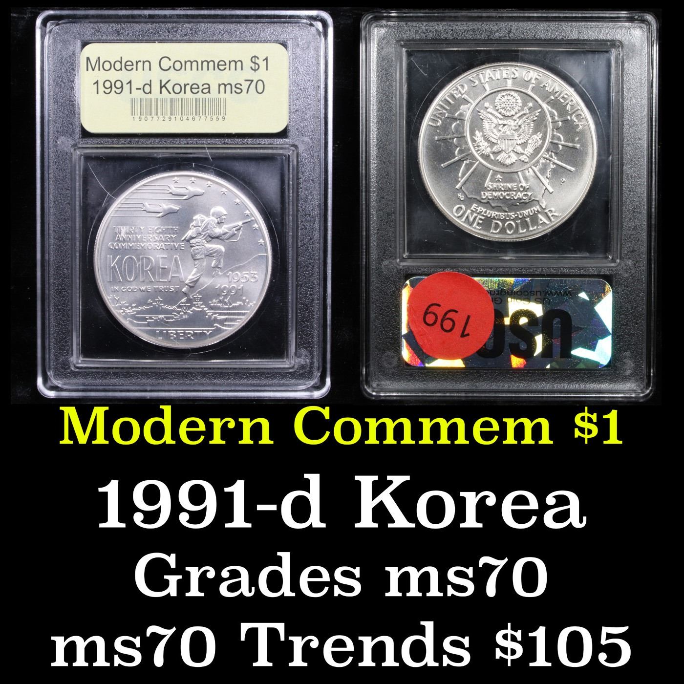 1991-d Korean War Modern Commem Dollar $1 Grades ms70, Perfection. The 1991 Korean War Memorial Silver Dollar was issued for the 38th anniversary of the Korean War. The oddly chosen anniversary date is the result of the division between North and South Korea at the 38th degree of latitude. This example was graded ms70 by USCG.