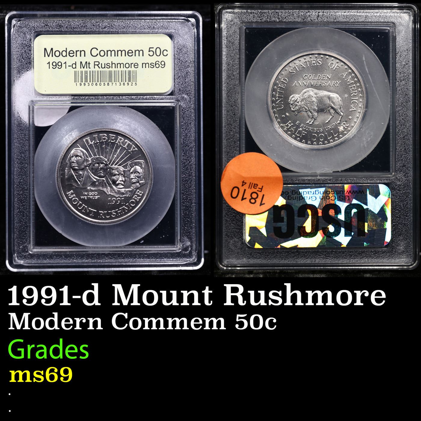 1991-d Mount Rushmore Modern Commem Half Dollar 50c Graded Gem+++++ Unc BY USCG.