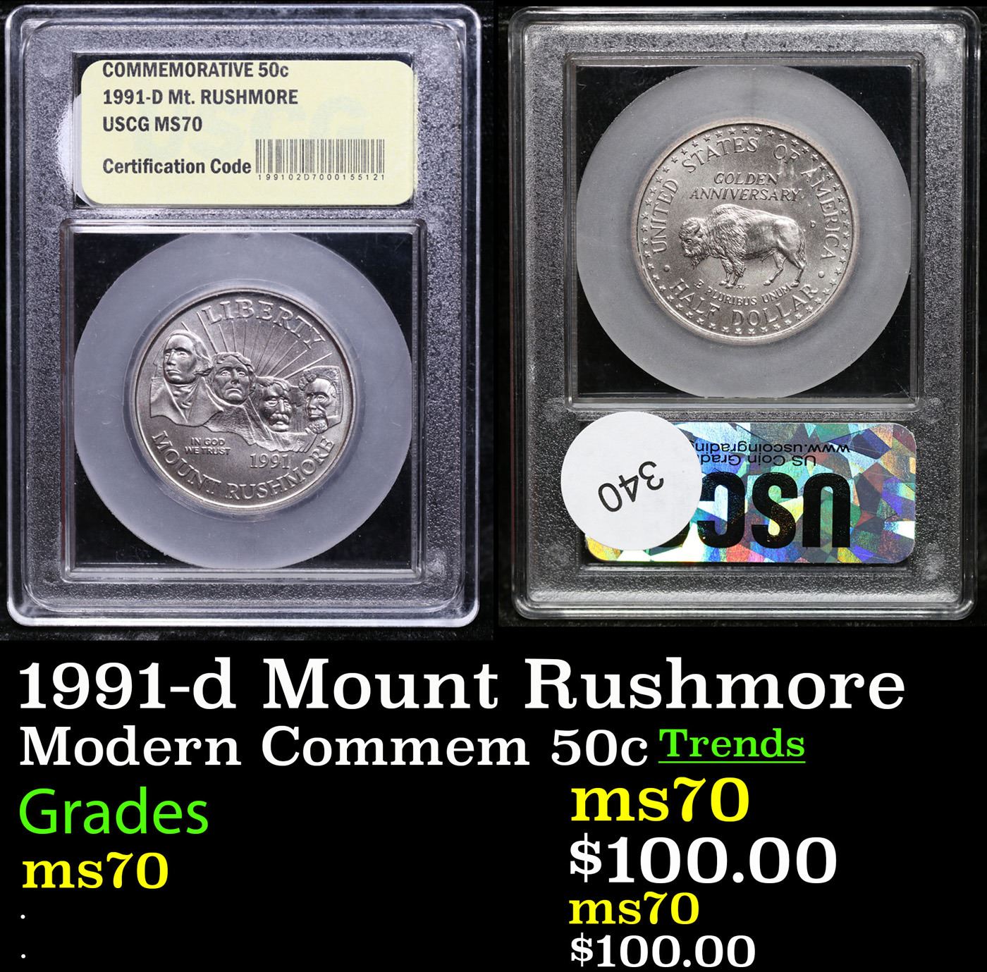 1991-d Mount Rushmore Modern Commem Half Dollar 50c Graded ms70, Perfection By USCG