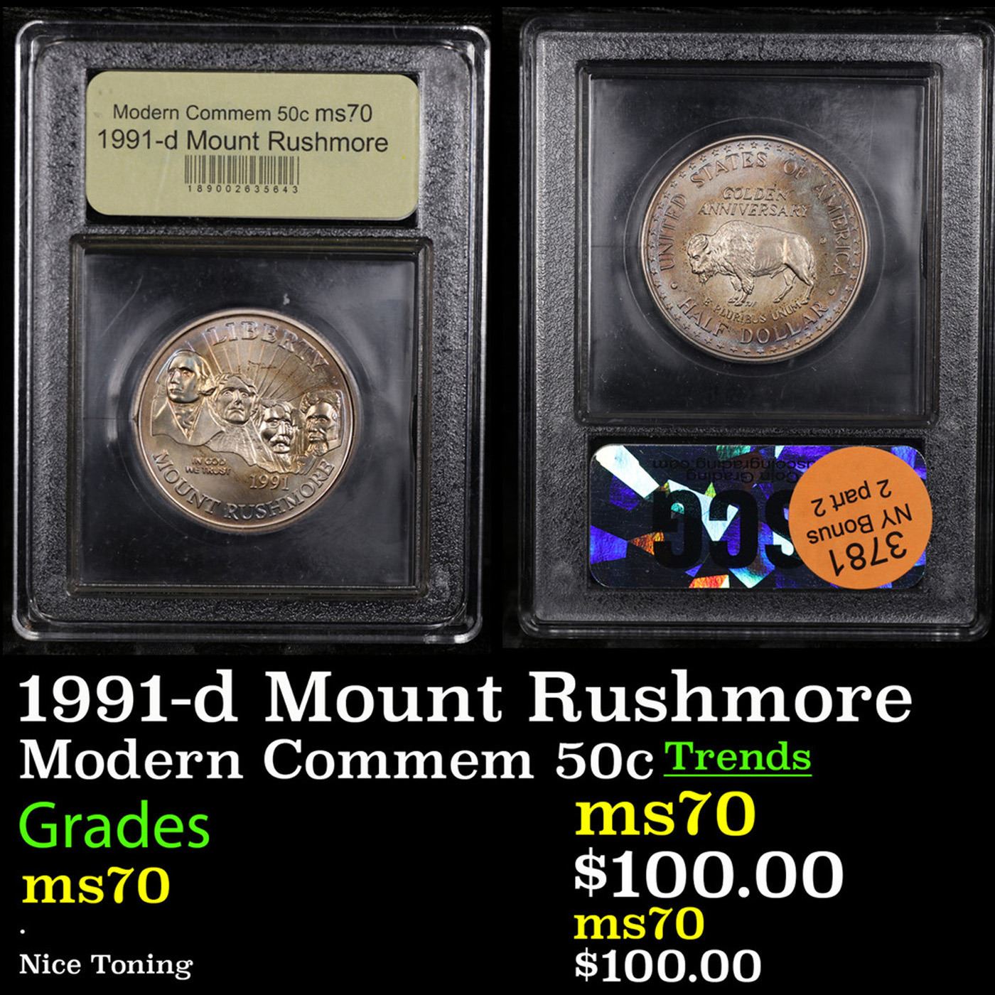1991-d Mount Rushmore Modern Commem Half Dollar 50c Graded ms70, Perfection By USCG.