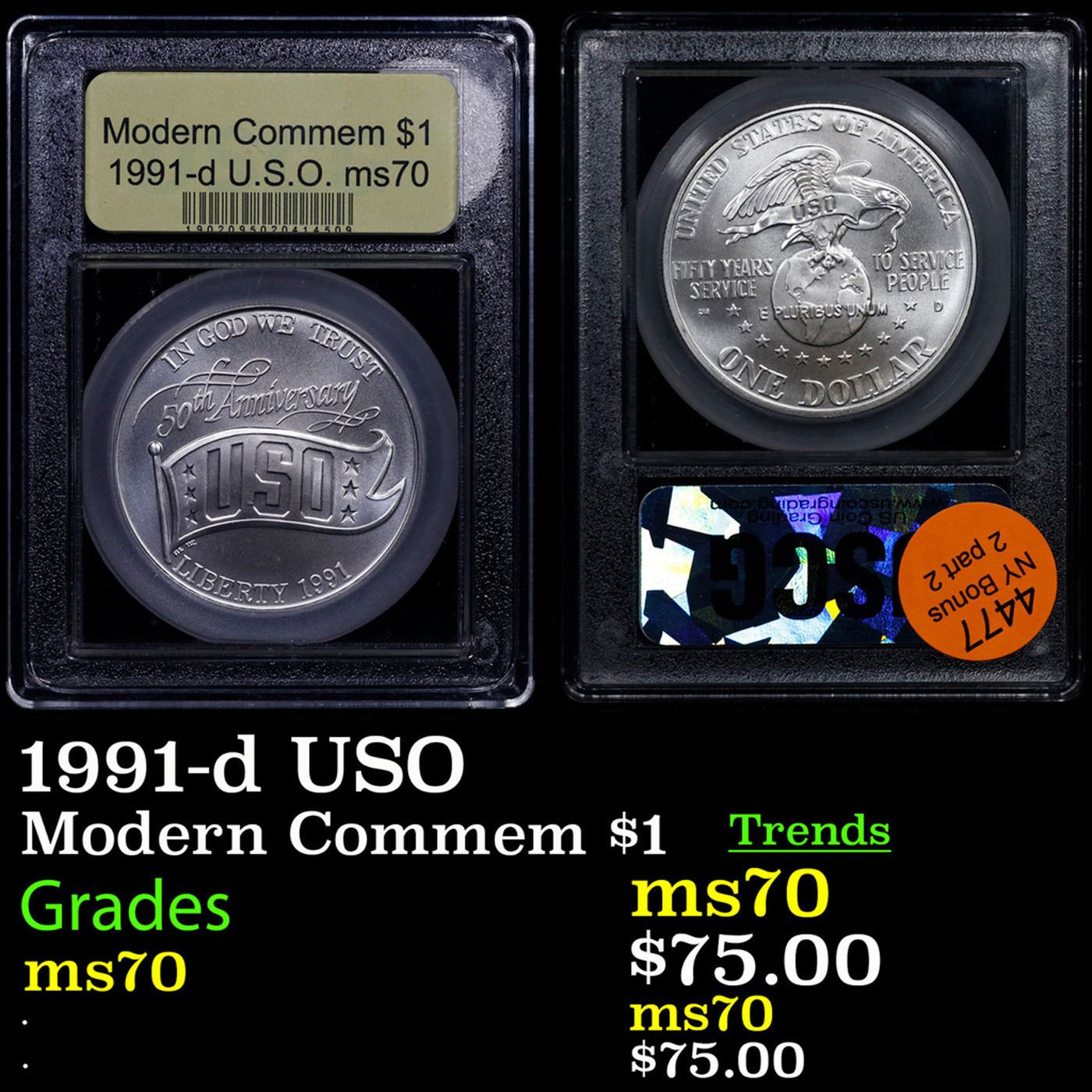 1991-d USO Modern Commem Dollar $1 Graded ms70, Perfection By USCG.