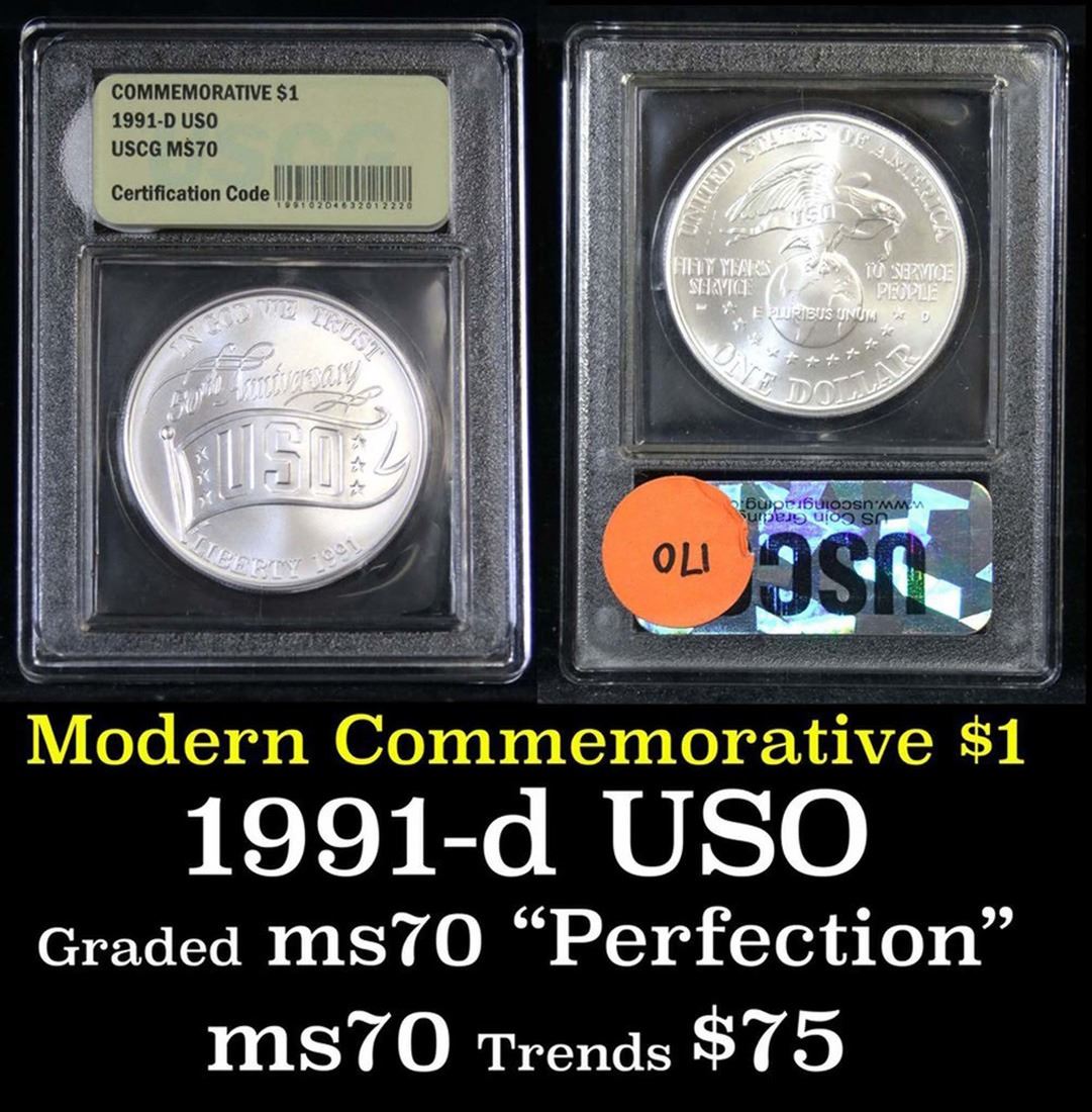 1991-d USO . . Modern Commem Dollar $1 Grades ms70, Perfection.