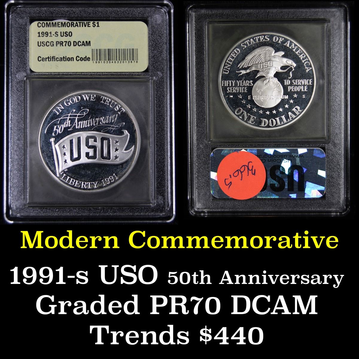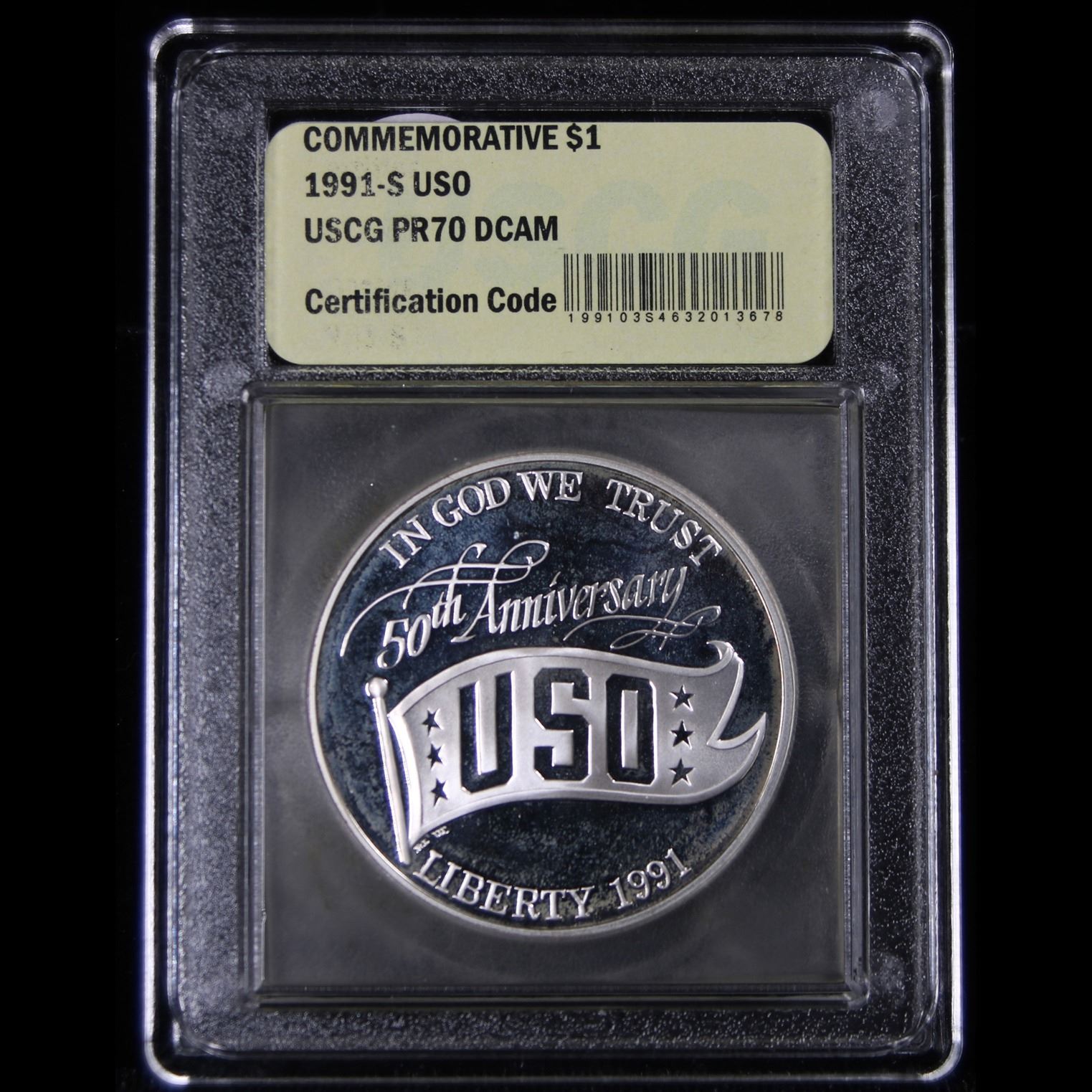 1991-d USO Unc Modern Commem Dollar $1 Graded ms70, Perfection by USCG.