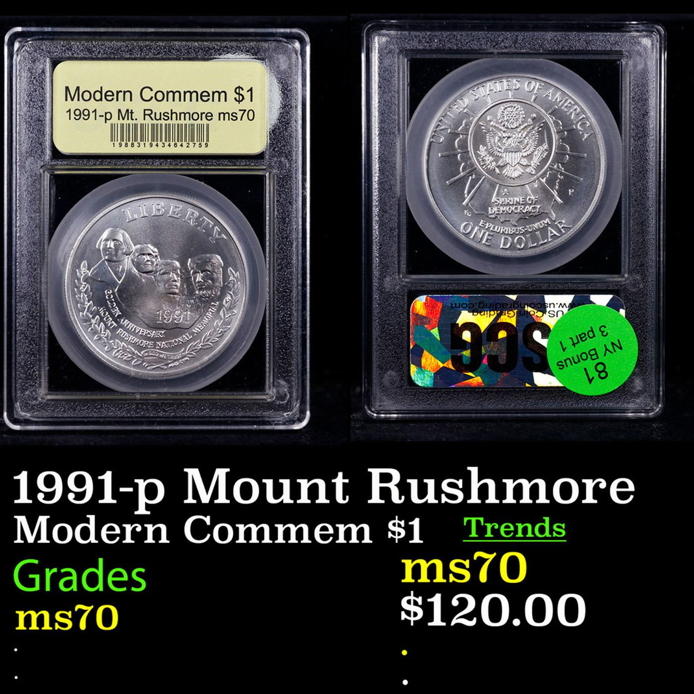 1991-p Mount Rushmore Modern Commem Dollar $1 Graded ms70, Perfection BY USCG.
