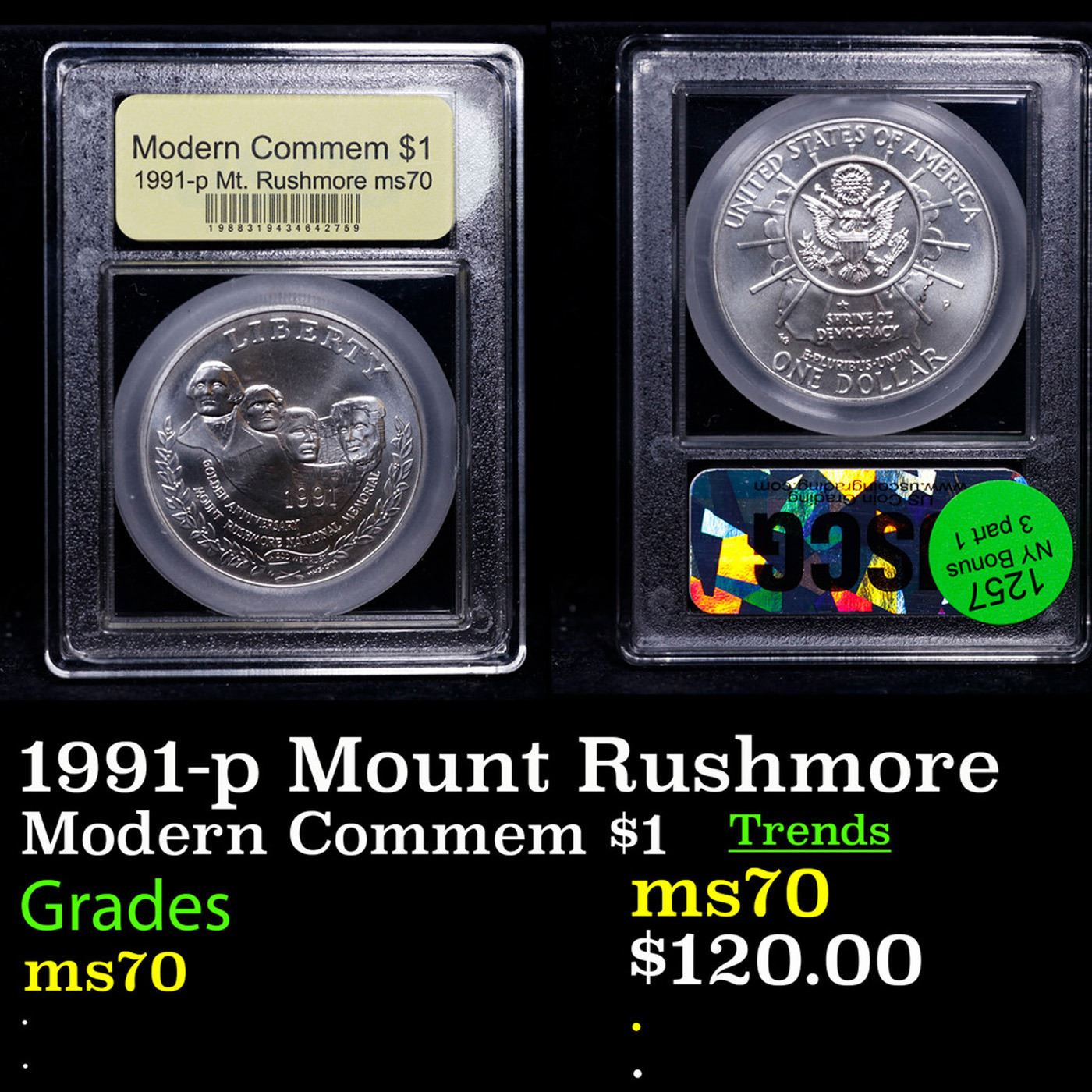 1991-p Mount Rushmore Modern Commem Dollar $1 Graded ms70, Perfection BY USCG.