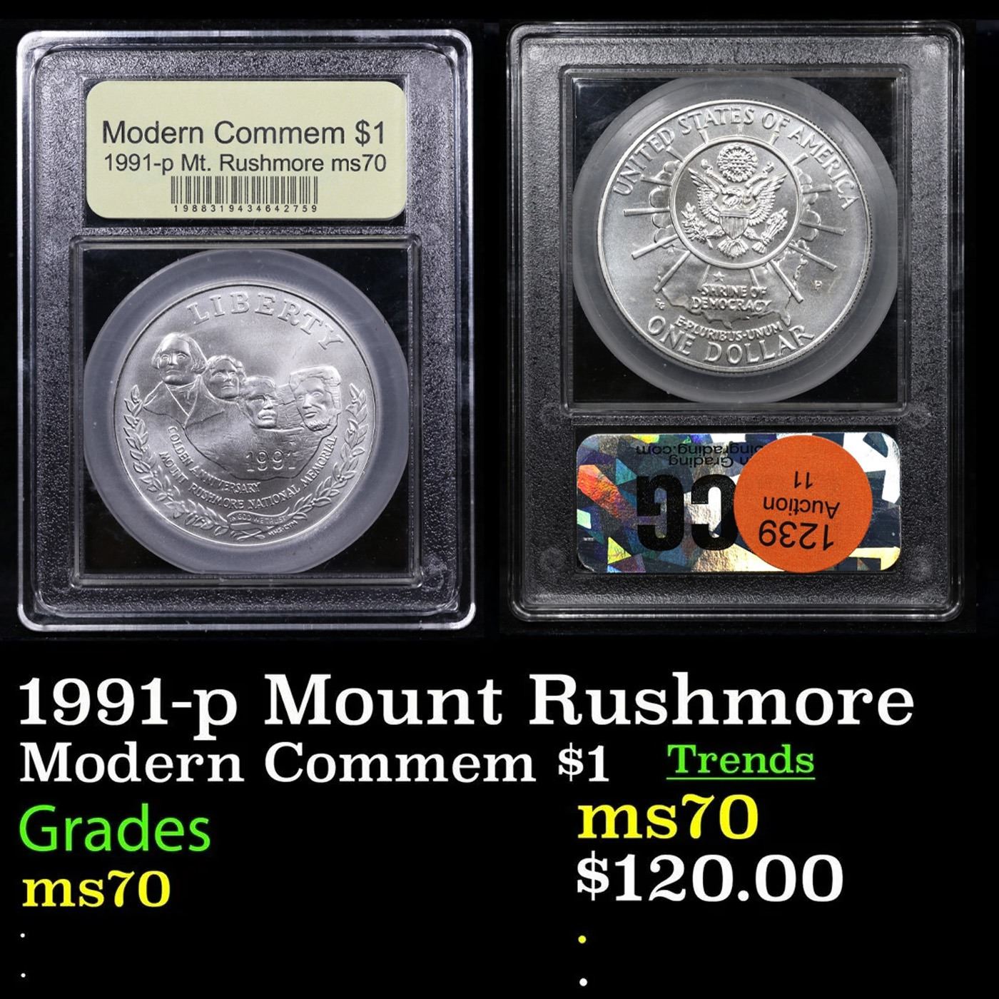 1991-p Mount Rushmore Modern Commem Dollar $1 Graded ms70, Perfection BY USCG