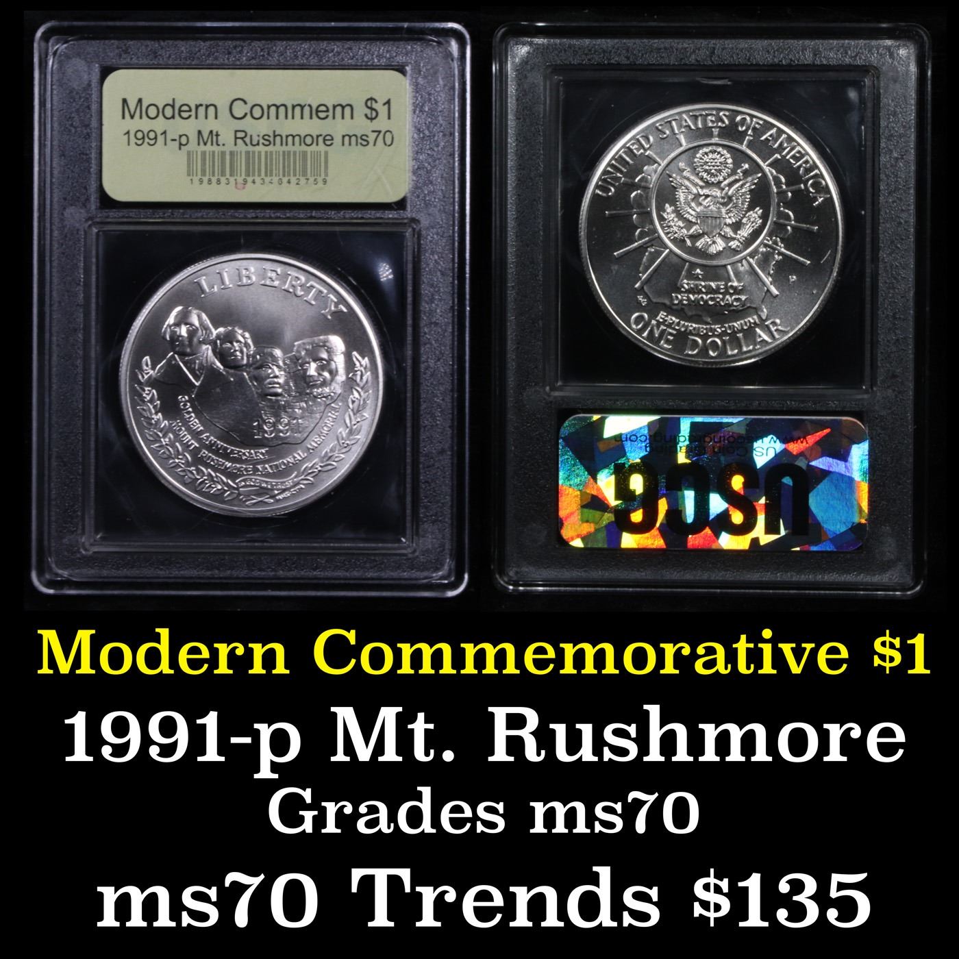 1991-p Mount Rushmore Modern Commem Dollar $1 Graded ms70, Perfection By USCG. Issued to celebrate the Golden Anniversary of The completion of Mount Rushmore. This coin is Graded perfection ms70 by USCG.