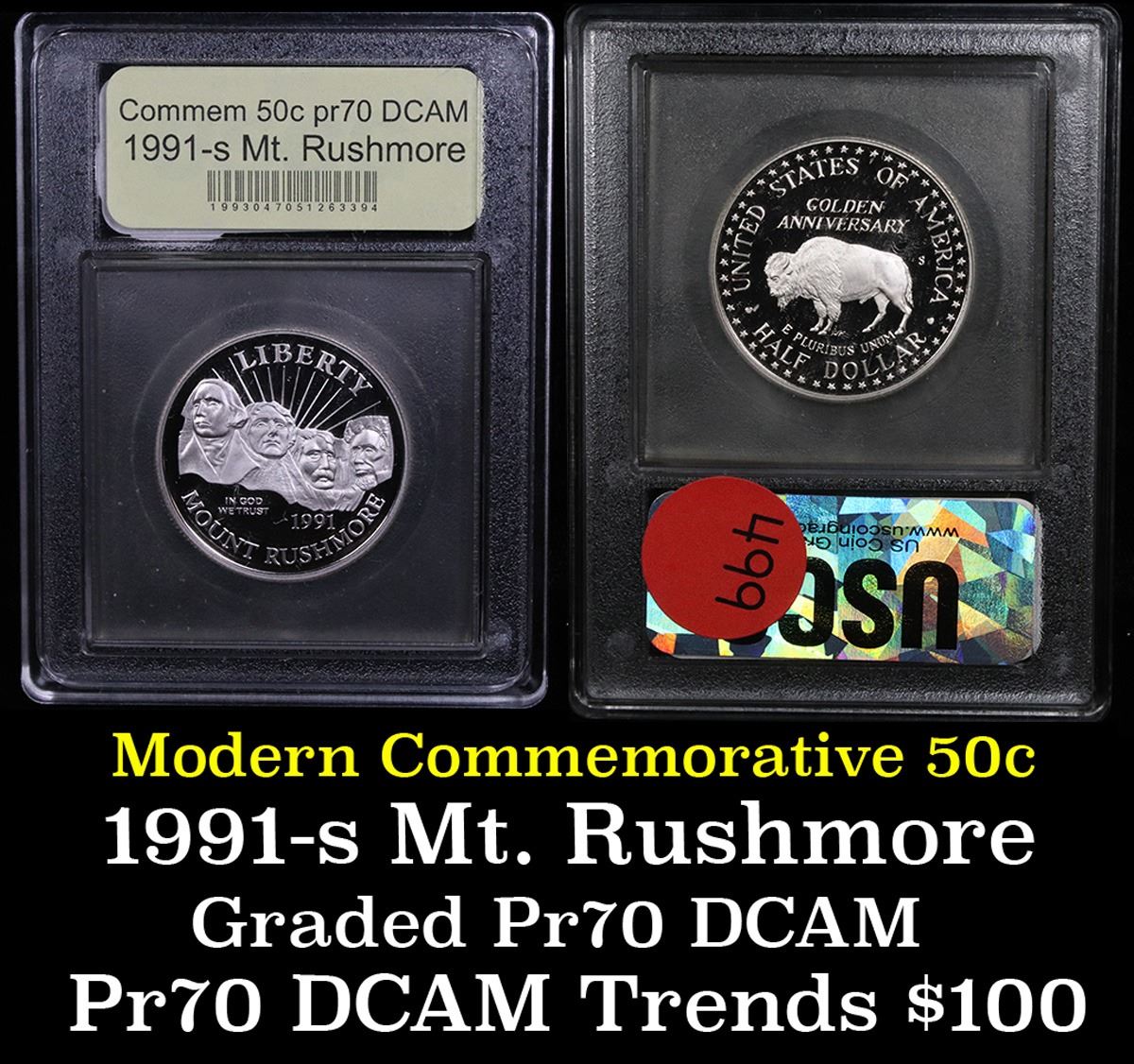 1991-s Mount Rushmore . . Modern Commem Half Dollar 50c Grades GEM++ Proof Deep Cameo. This commemorative was Issued to celebrate the Golden Anniversary of The completion of Mount Rushmore. This coin is Graded perfection Gem+++ Proof Deep Cameo by USCG.