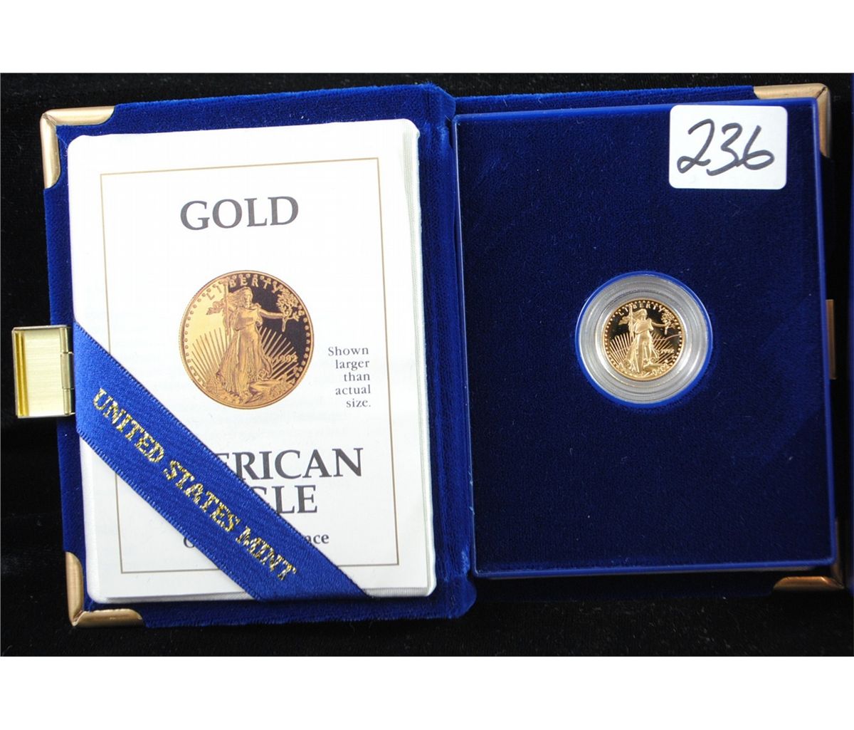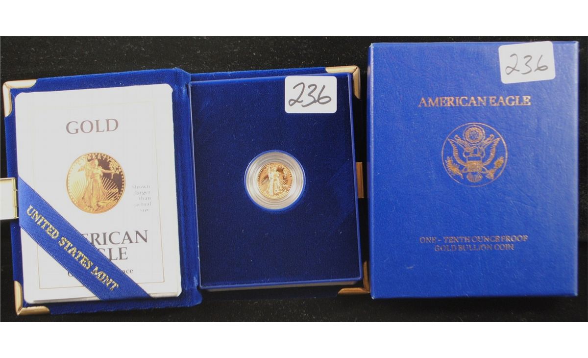 1992 1/10 OUNCE "PROOF" AMERICAN GOLD EAGLE WITH ORIGINAL BOX AND CERTIFICATE OF AUTHENTICITY