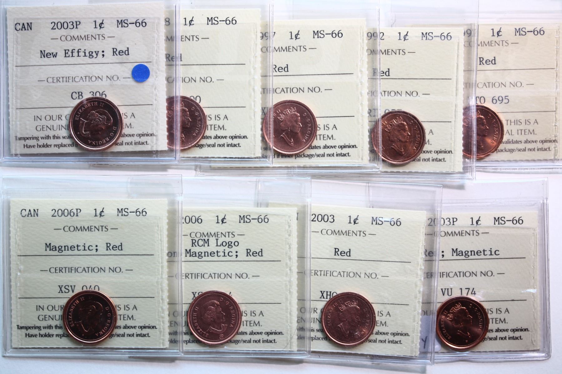 1992 1¢ (2), 1997, 1998, 2003P, 2003, 2006, 2006P, All 8 coins ICCS Superb Gem Mint State-66. Inclu