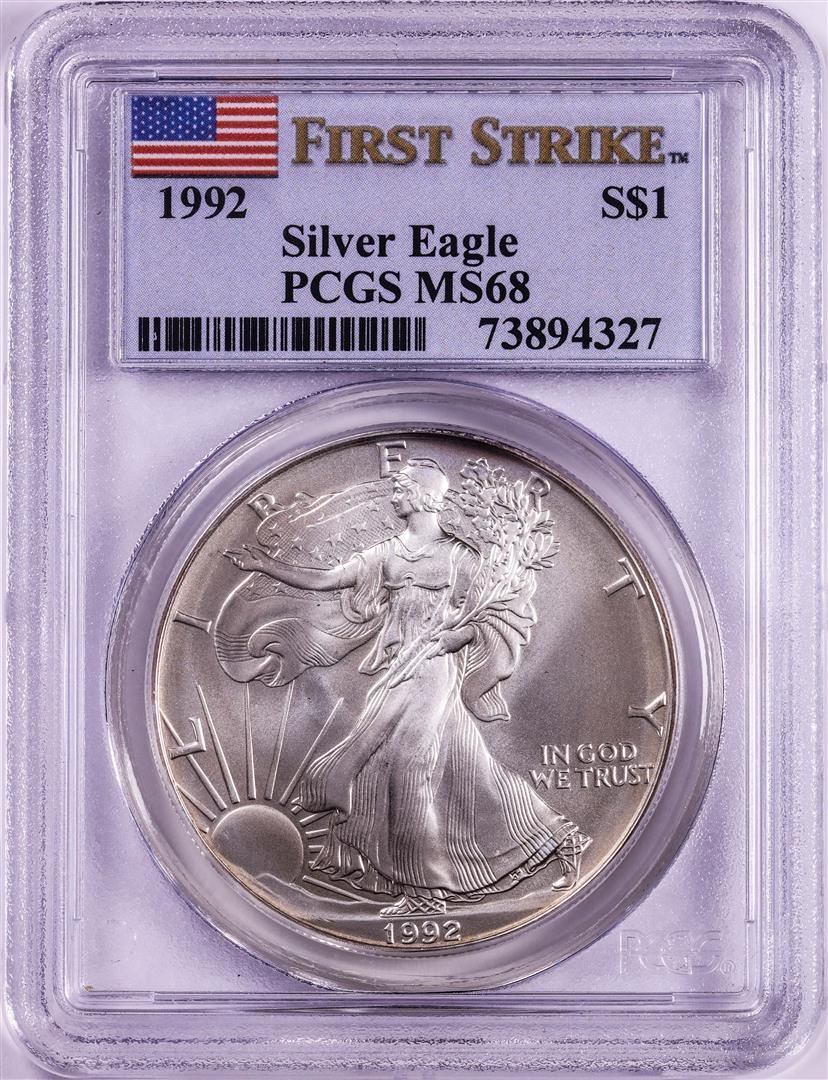 One 1992 $1 American Silver Eagle Coin PCGS MS68 First Strike. PCGS Graded.