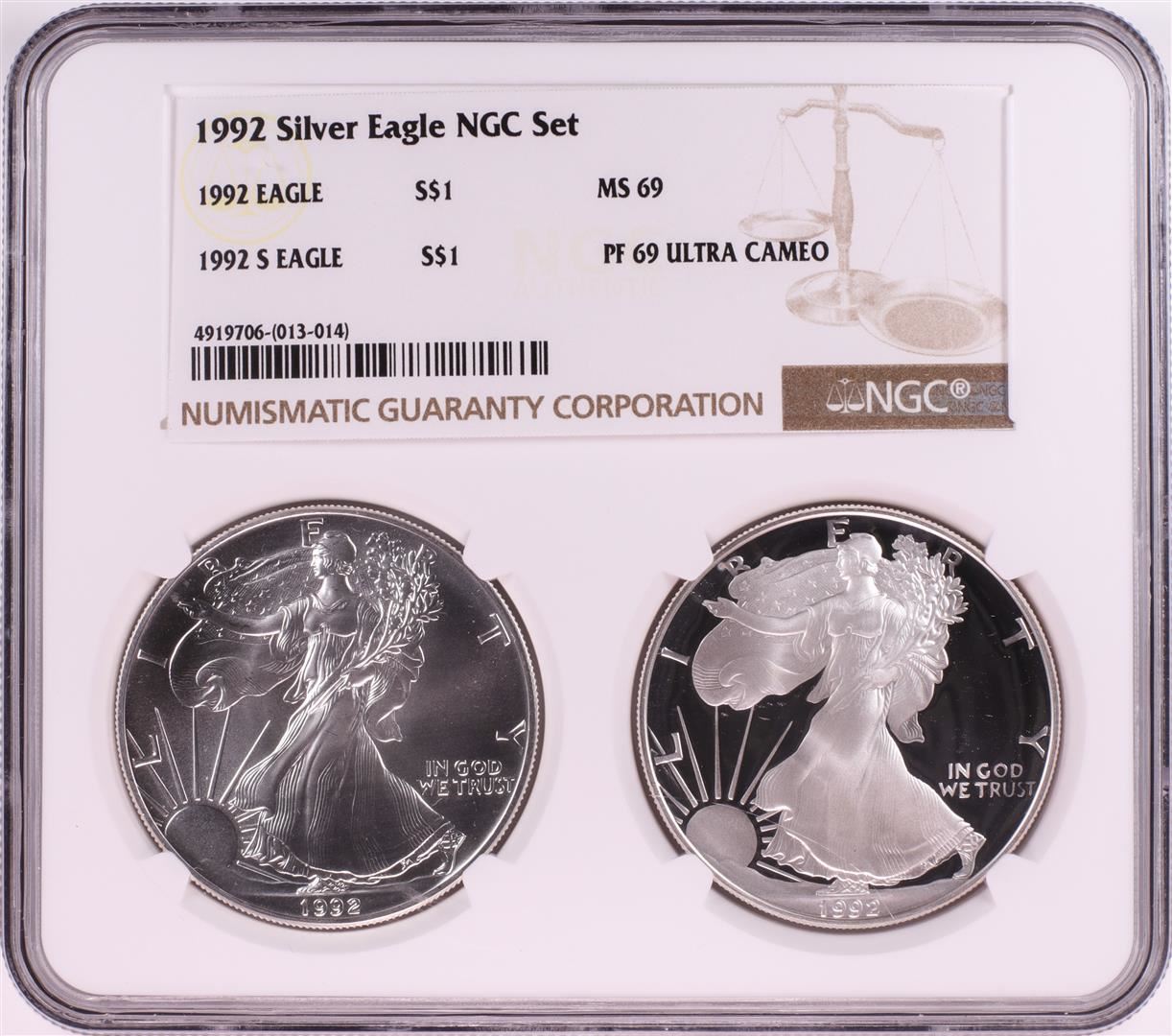 1992 $1 American Silver Eagle Coin Set NGC MS69/PF69 Ultra Cameo