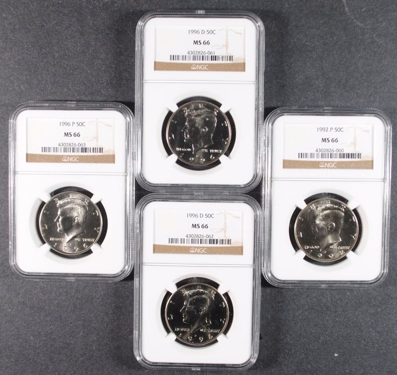 1992, 1996 & ( 2 ) 1996-D KENNEDY HALF DOLLARS, NGC MS-66