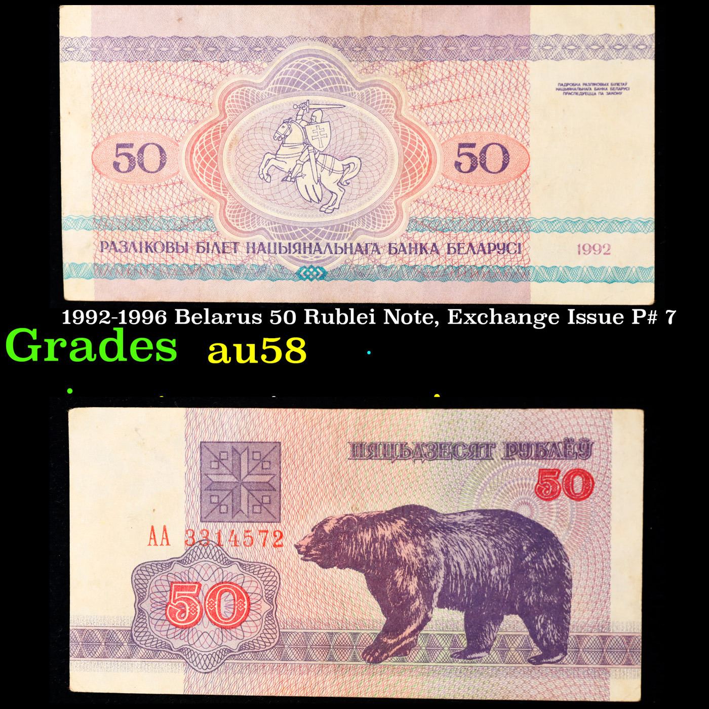 1992-1996 Belarus 50 Rublei Note, Exchange Issue P# 7 Grades Choice AU/BU Slider.