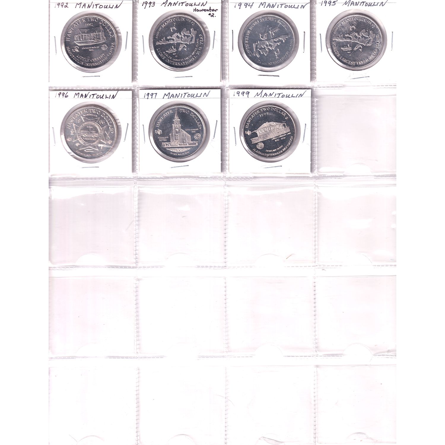 1992-1997 & 1999 Manitoulin Haweater $2 Trade Dollars in Plastic Pages. Please see image for variety. 7pcs