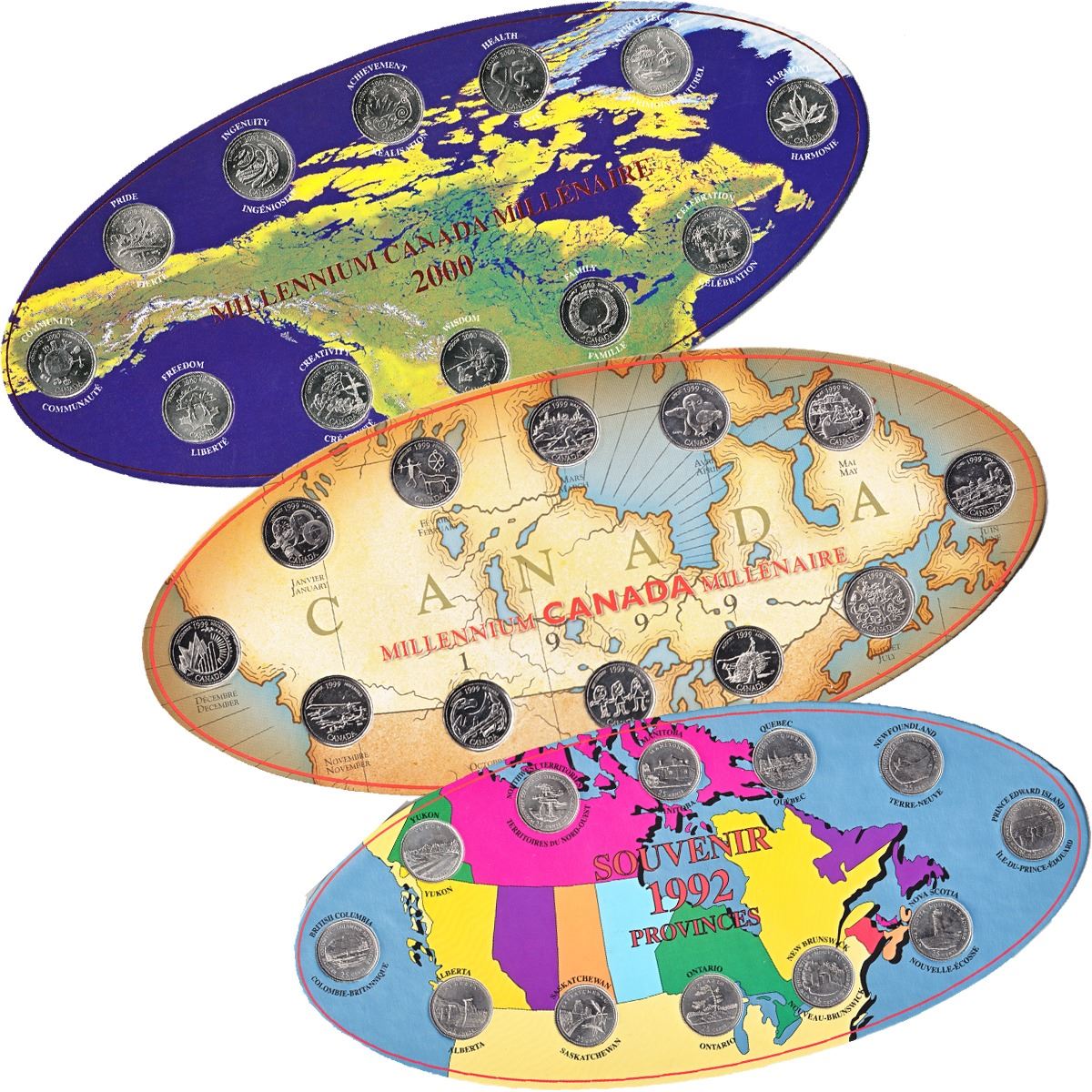 1992, 1999, and 2000 Oval Shaped 25-cent Commemorative holders with coins. (3 sets)