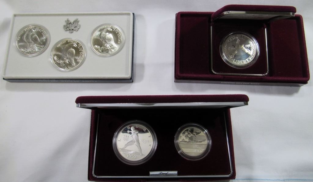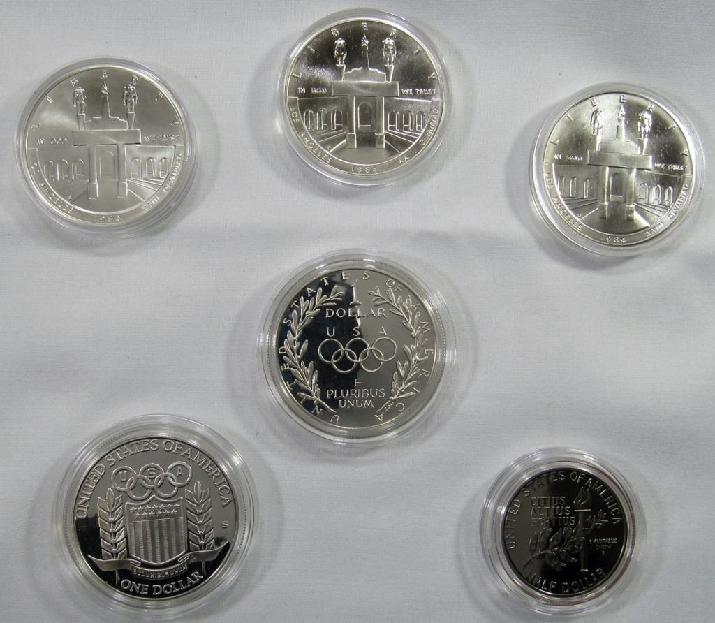OLYMPIC PROOF SILVER COIN, 1984 3 COIN UNC OLYMPIC SET - ALL ORIGINAL