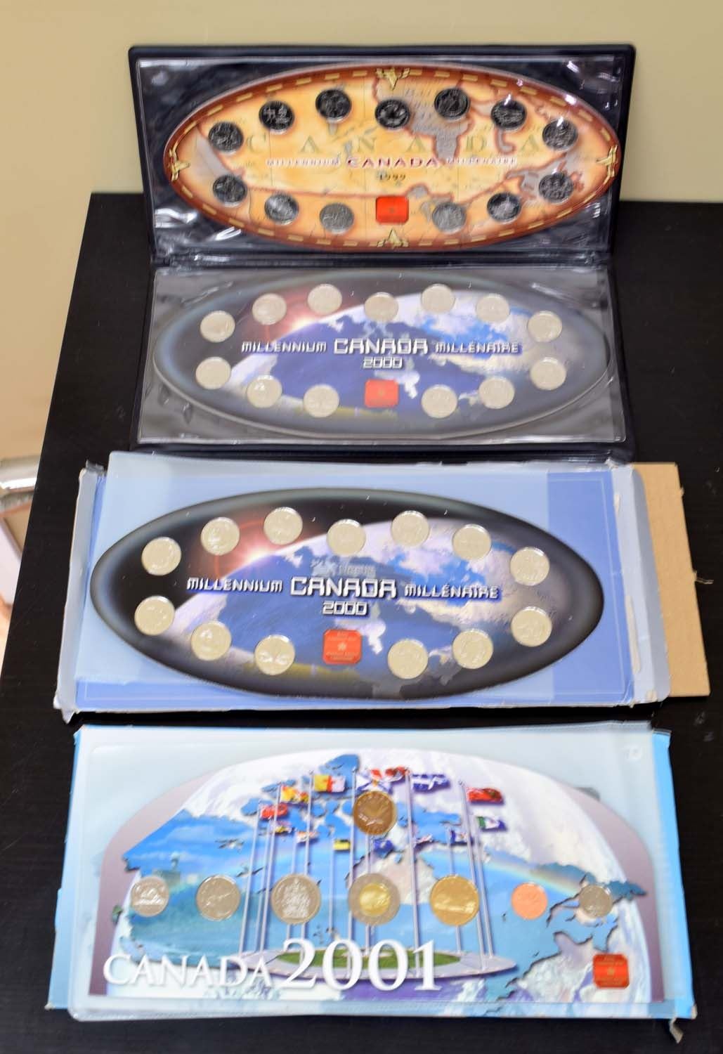 3 x Canada 125 Sleaves, 7 x 1999-2000 Unisafe Packets,2 x RCM 2 Map Set and Binder,4 x 2000 Nestle Year set and 1 x 2001 RCM Year ser on Card wMint /Medalion