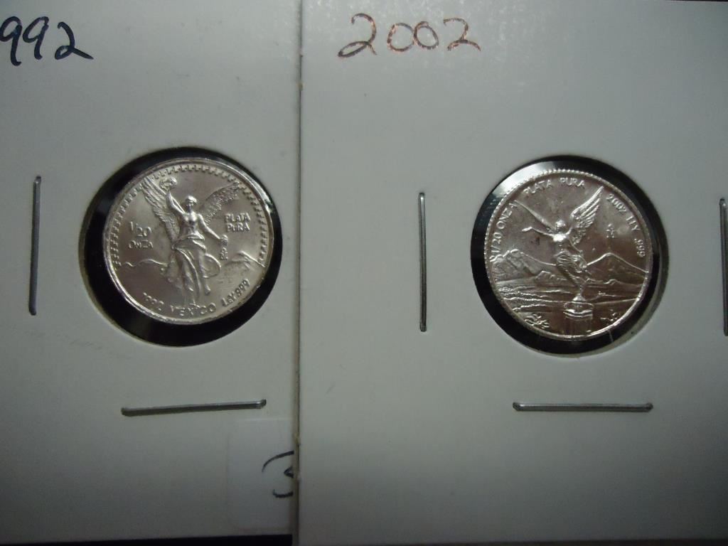 1992 & 2002 MEXICO 1/20 OZ. SILVER LIBERTADS UNC
