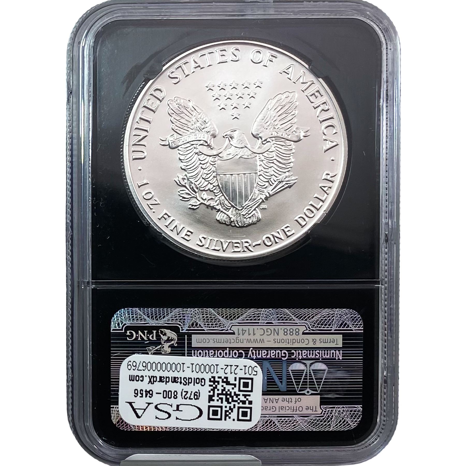 e. Coins sold referencing a third-party grading service are sold “AS IS” without any express or implied warranty, except for a guarantee by GSA that they are genuine. Removal or alteration of the holder, voids all of Bidder’s claims concerning that Product. Certain warranties may be available from the grading services and Bidders are referred to them for further details: Numismatic Guaranty Corporation (NGC), PO Box 4776, Sarasota, FL 34230, www.ngccoin.com/services/writtenguarantee.asp; Professional Coin Grading Services (PCGS), PO Box 9458, Newport Beach, CA 92658, www.pcgs.com/guarantee.html; ANACS, 6555 S. Kenton St., Ste. 303, Englewood, CO 80111; and Independent Coin Grading Co. (ICG), 7901 East Bellview, Ave., Suite 50, Englewood, CO 80111.