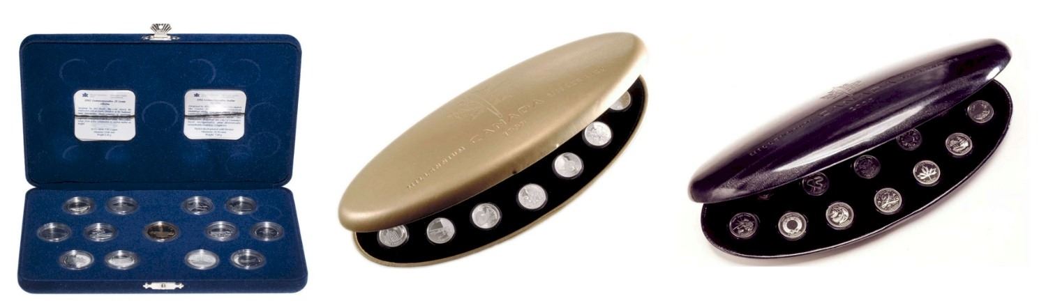 1992 25¢ 125th Anniversary of Confederation Silver Proof Set, 1999 Millenium Commemorative Set, and