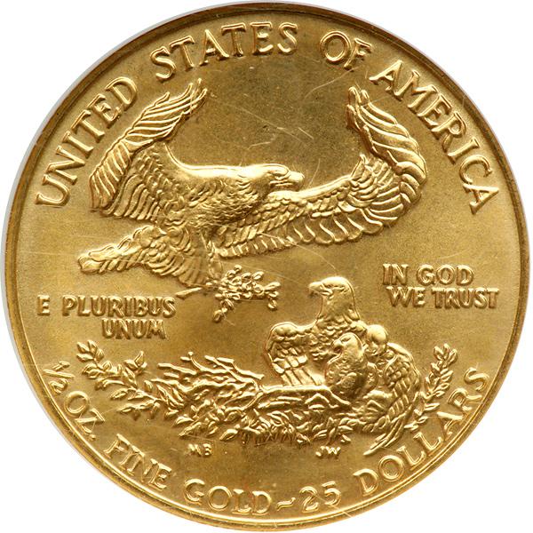 1992 $25 Gold Eagle. NGC graded MS-69. Contains ½ oz. of gold (PCGS # 9862) .